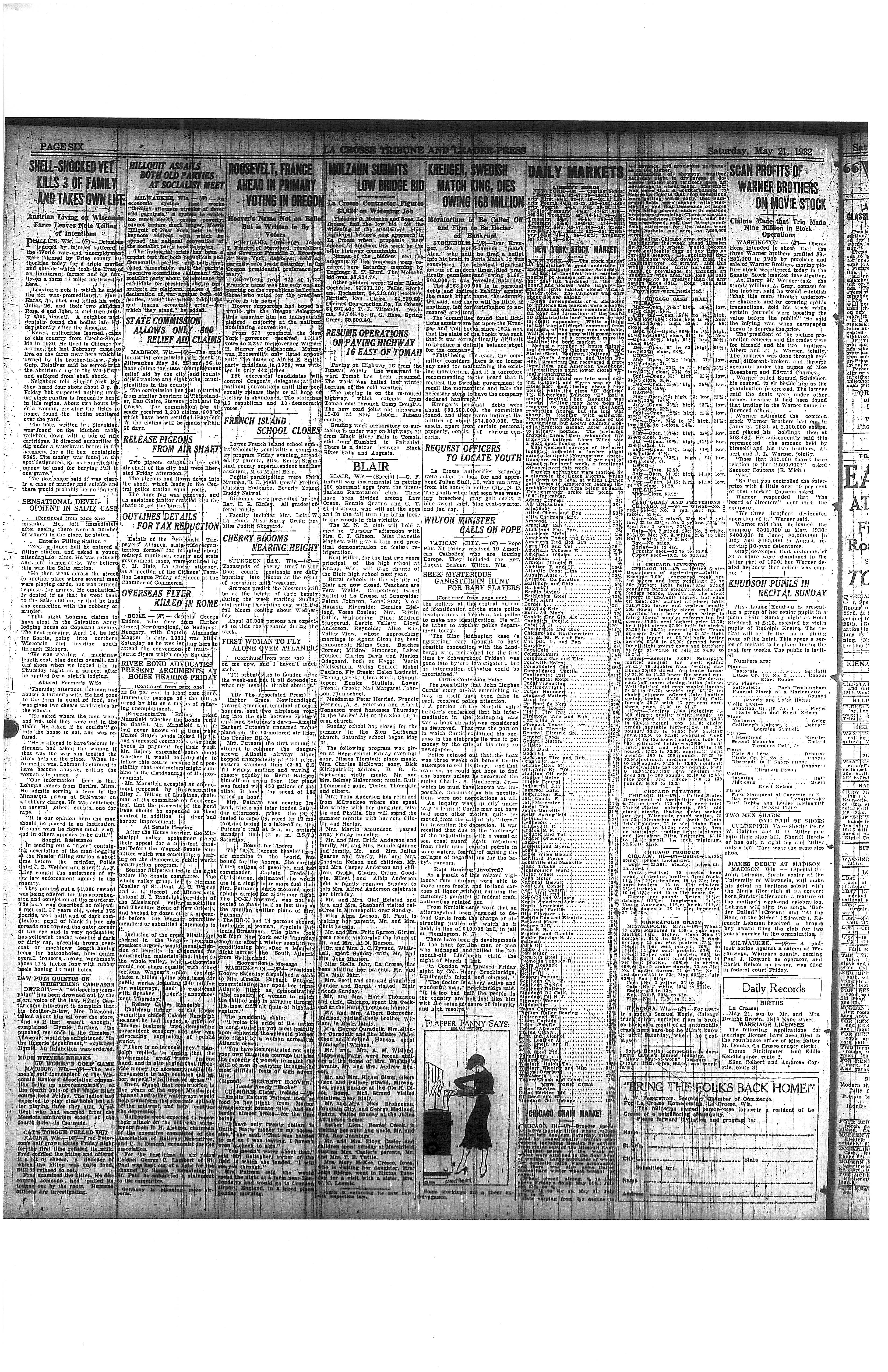 February 23, 1933, page 1 February 23, 1933, page 6 May 13, 1933, page 1 May 13, 1933, page 6 May 19, 1933, page 1 May 19, 1933, page 6 October 23, 1933, page 1 October 23, 1933, page 6 November 1, 1933, page 1 November 1, 1933, page 6Mississippi River Clamming