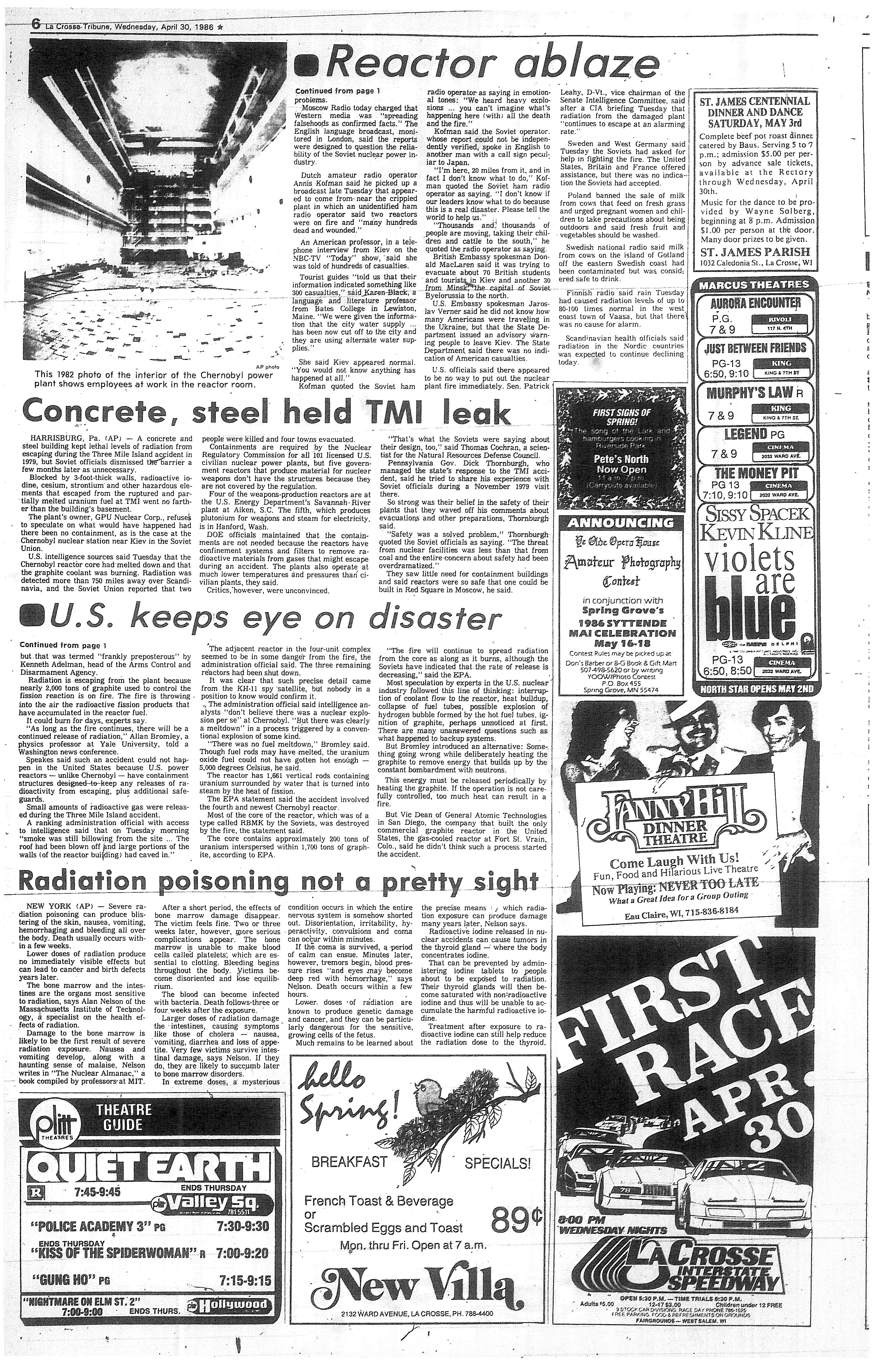 January 29, 1986, page 1 January 29, 1986, page 6 January 29, 1986, page 7 January 29, 1986, page 10Chernobyl