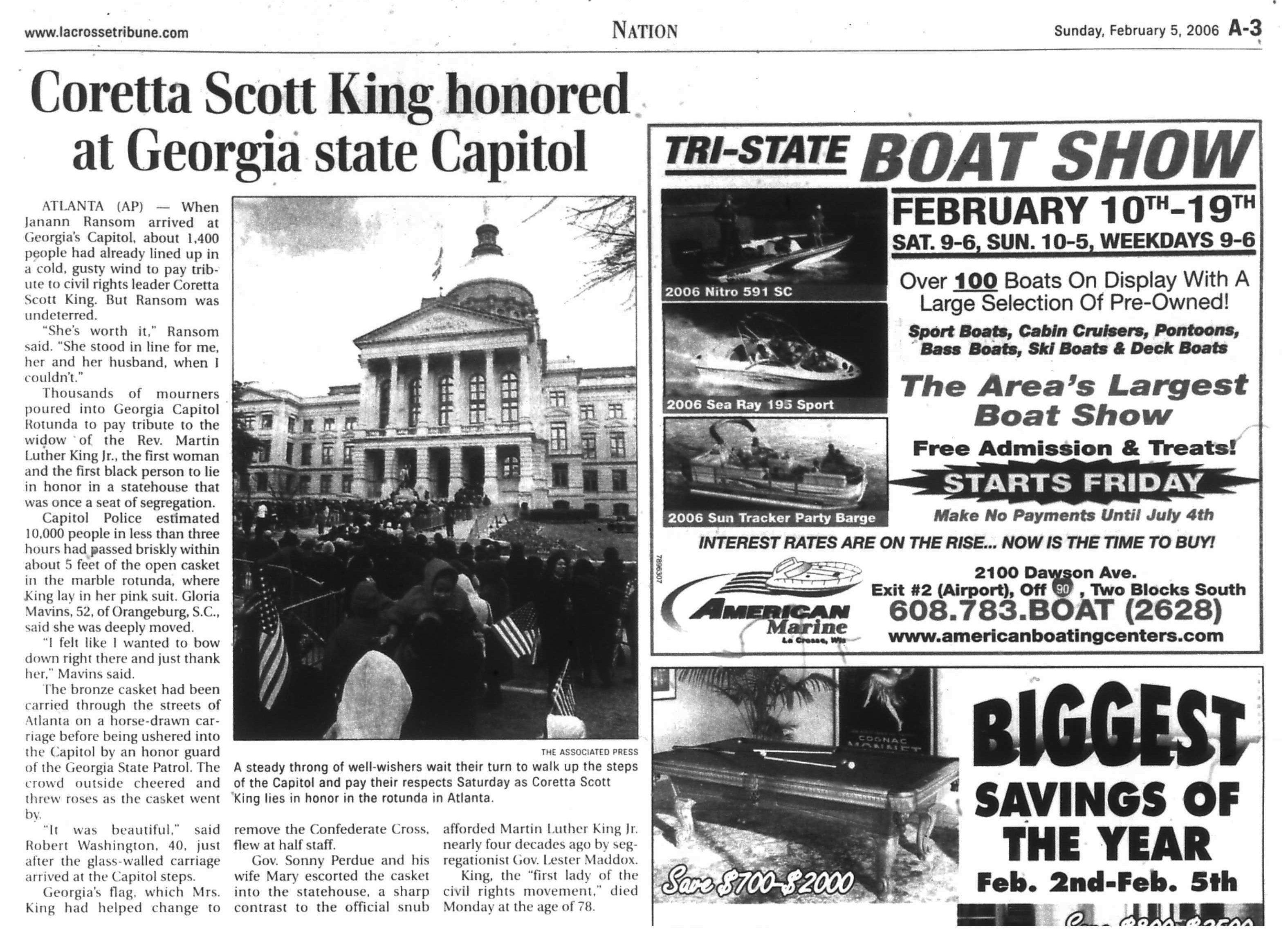April 29, 1986, page 1 April 29, 1986, page 5 April 30, 1986, page 1 April 30, 1986, page 6Civil Rights — Coretta Scott King