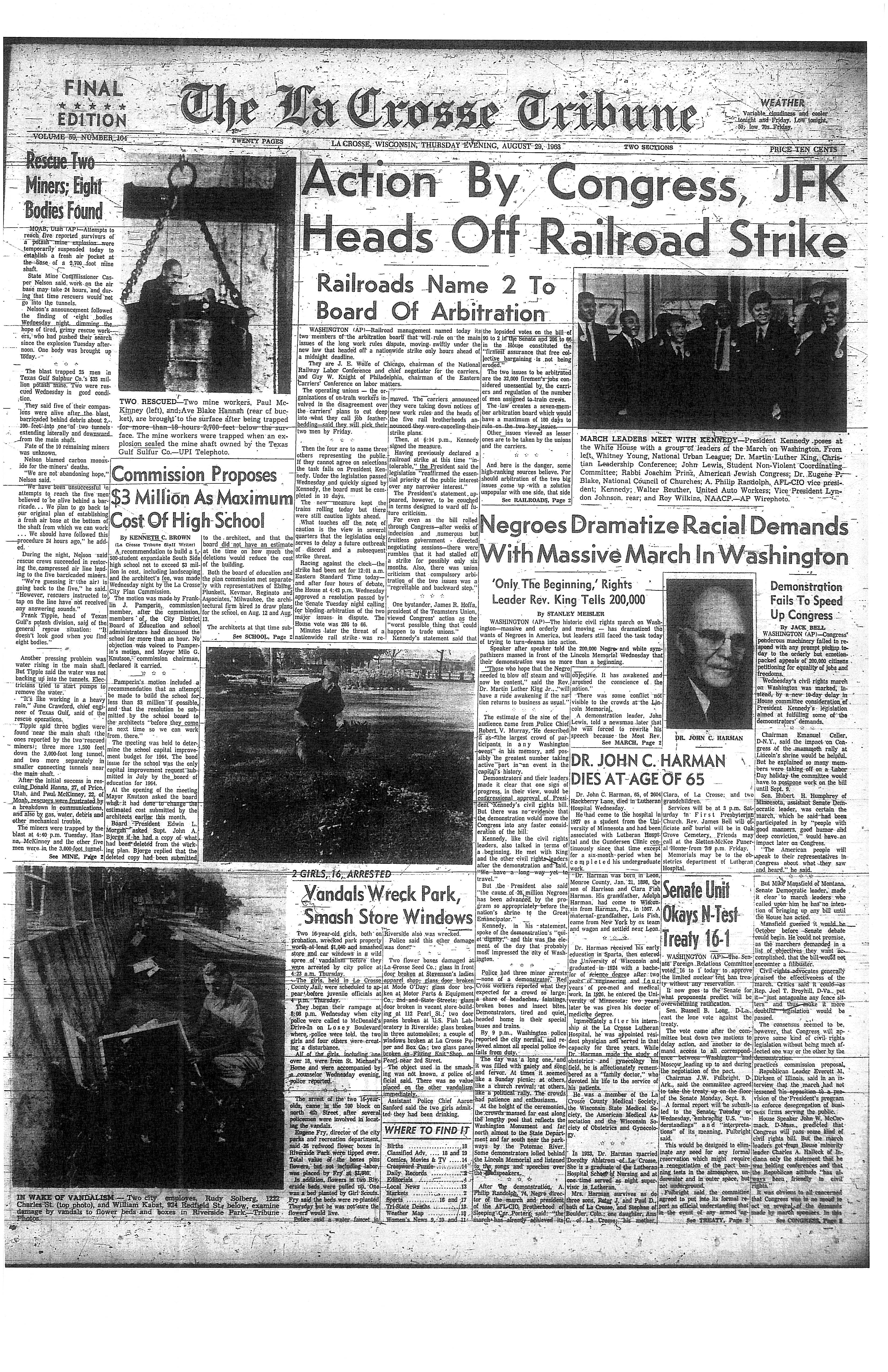 August 28, 1963, page 1 August 28, 1963, page 5 August 29, 1963, page 1 August 29, 1963, page 2Civil Rights — Martin Luther King Jr.