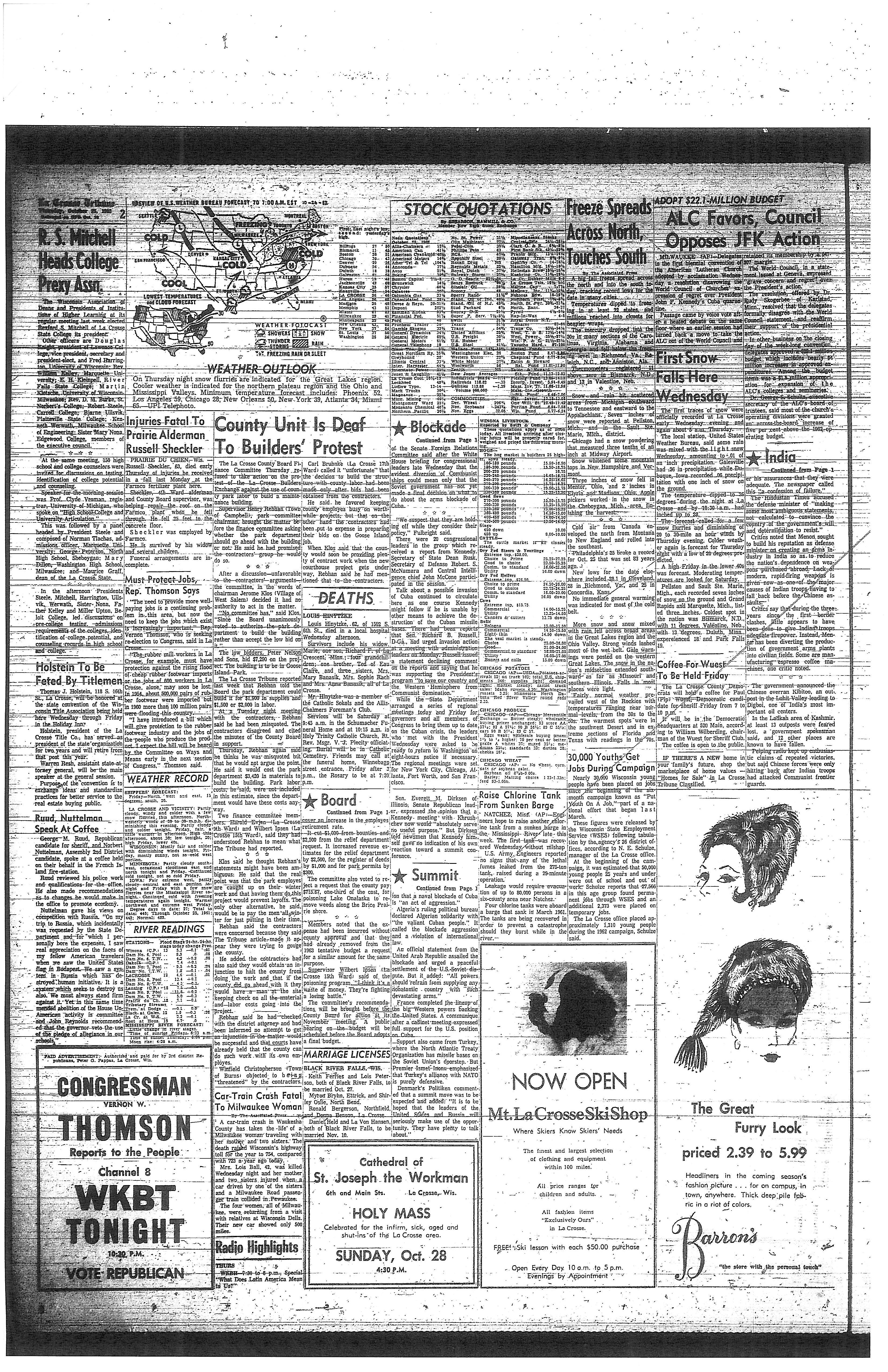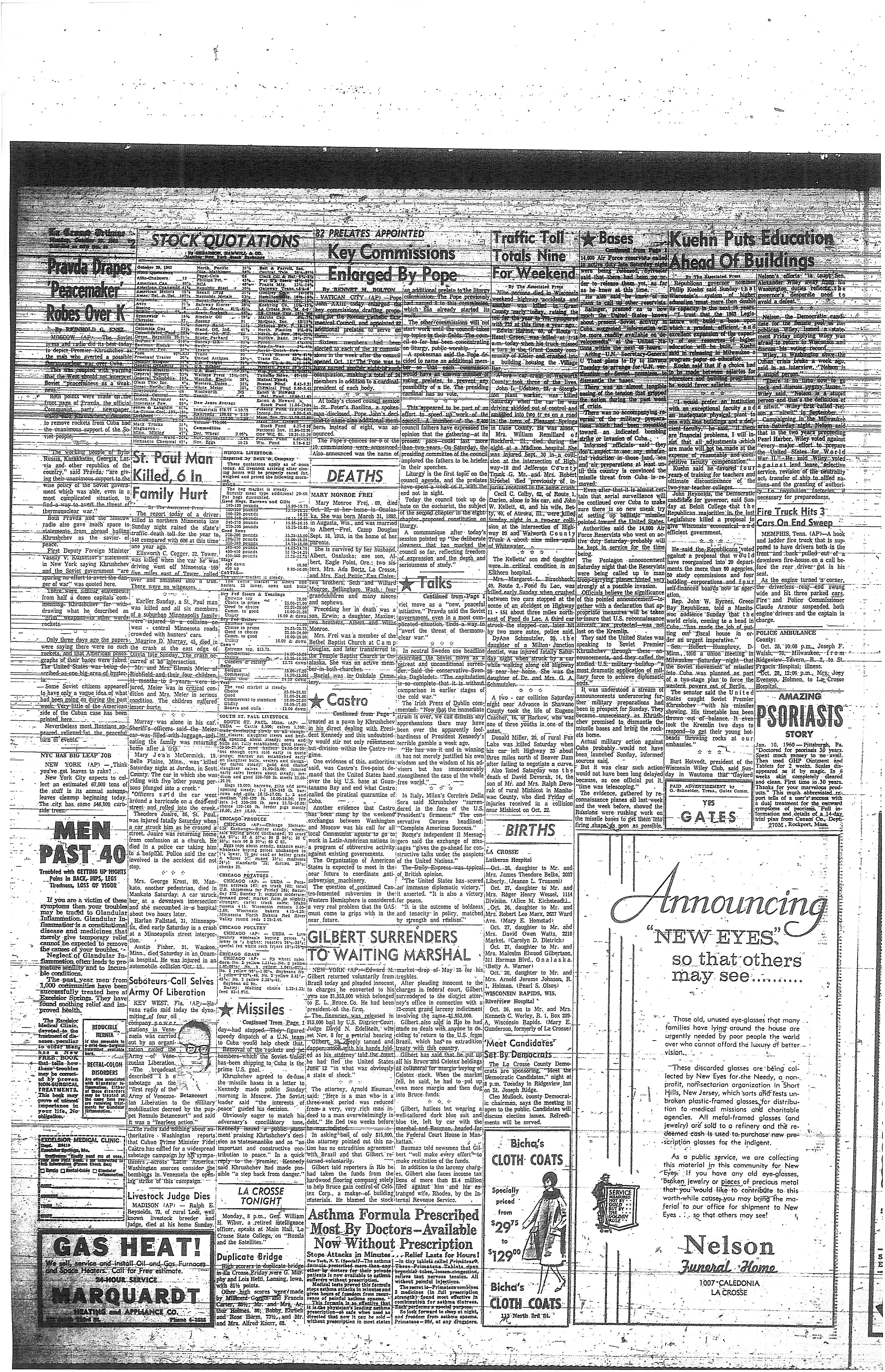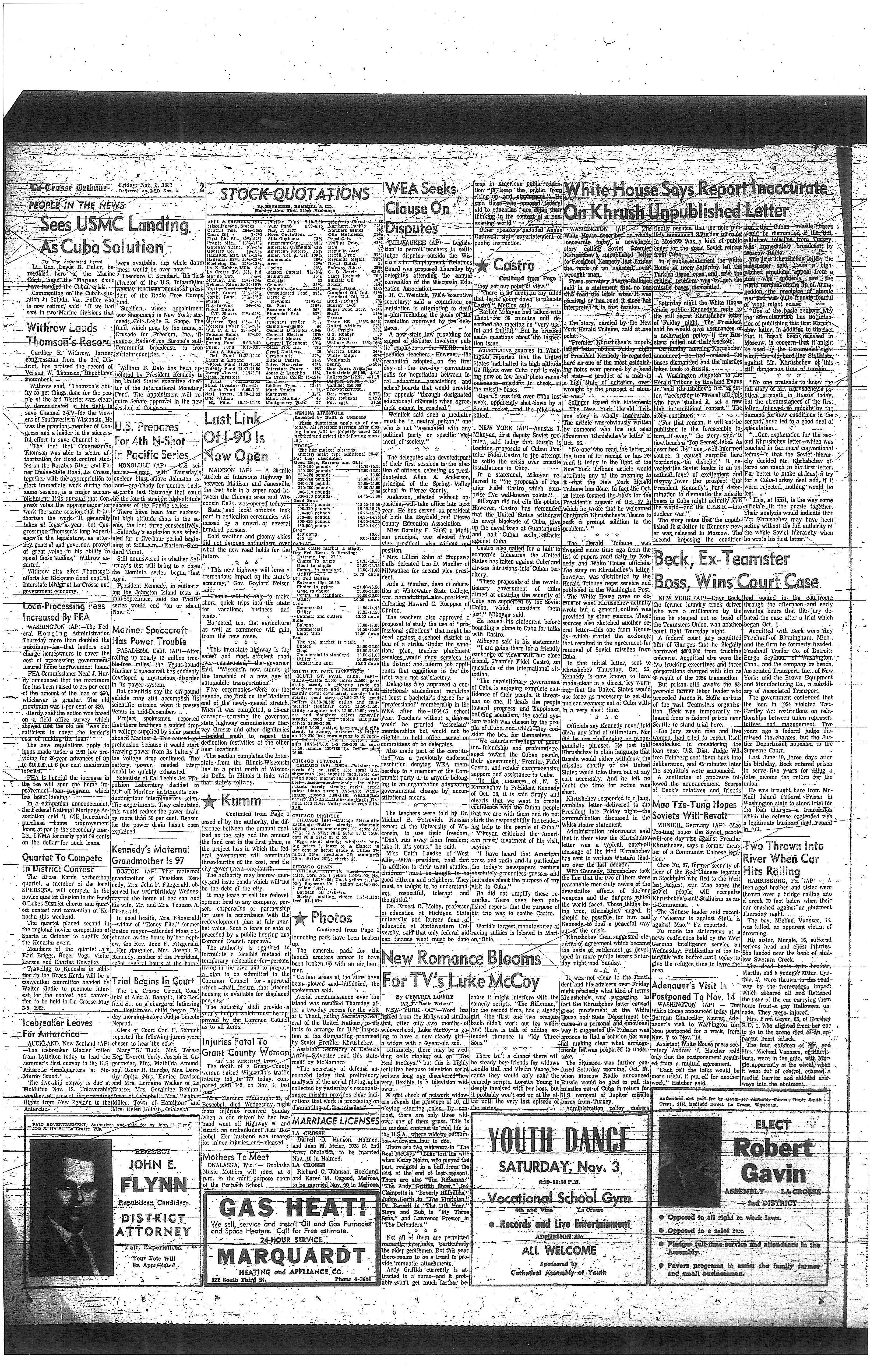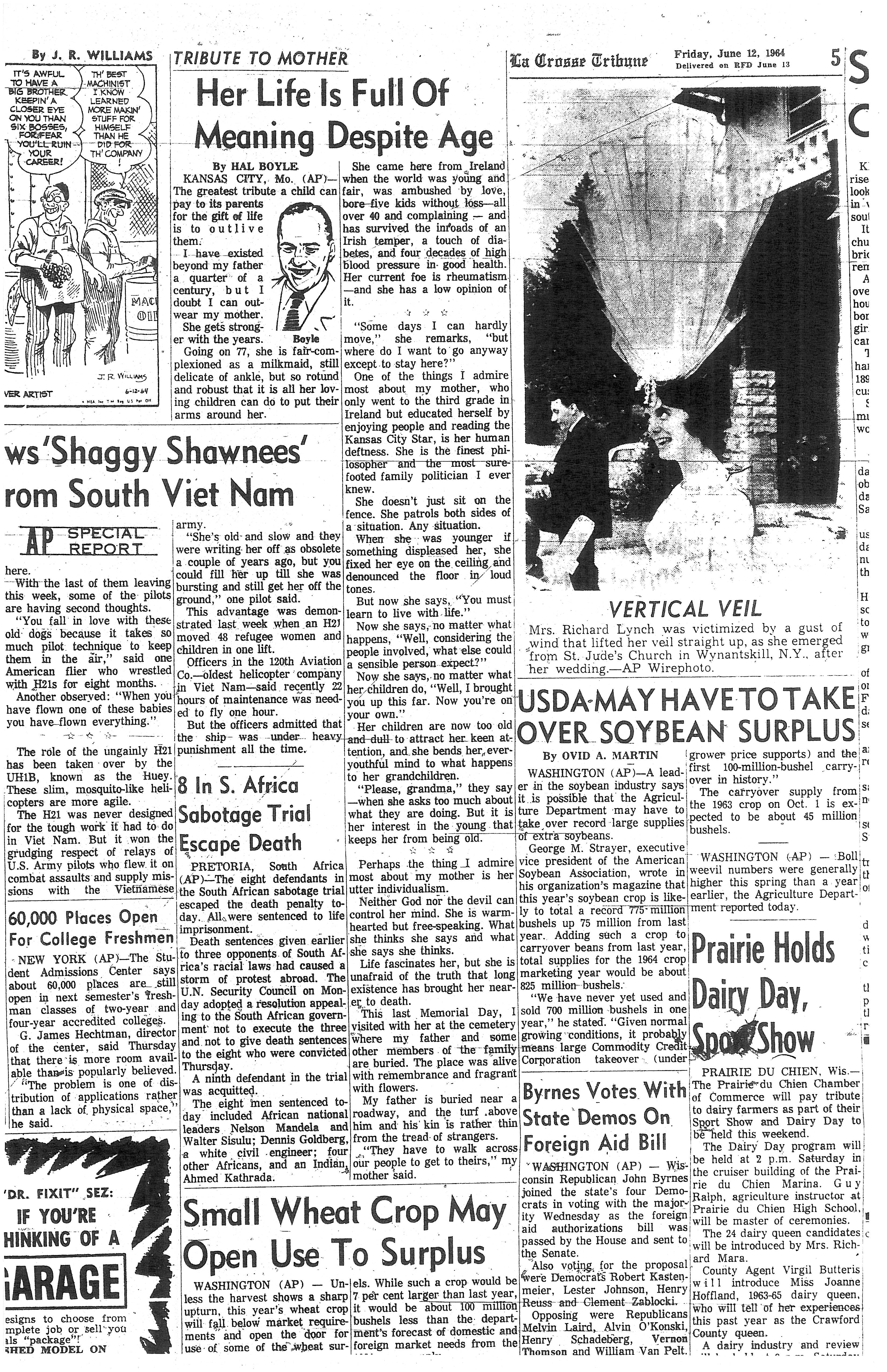 January 9, 1940, page 4 March 31, 1940, page 7 April 7, 1940, page 2April 14, 1940, page 5April 16, 1940, page 11April 17, 1940, page 16November 20, 1940, page 2November 26, 1940, page 14October 13, 1962, page 2October 16, 1962, page 9October 12, 1963, page 3 (insert)October 19, 1963, page 1 (insert)October 25, 1963, page 7March 4, 1972, page 22 September 20, 1984, page 19 October 7, 1984, page 11 February 5, 1987, page 1, part 1 February 5, 1987, page 8, part 2Milk Strike of 1933