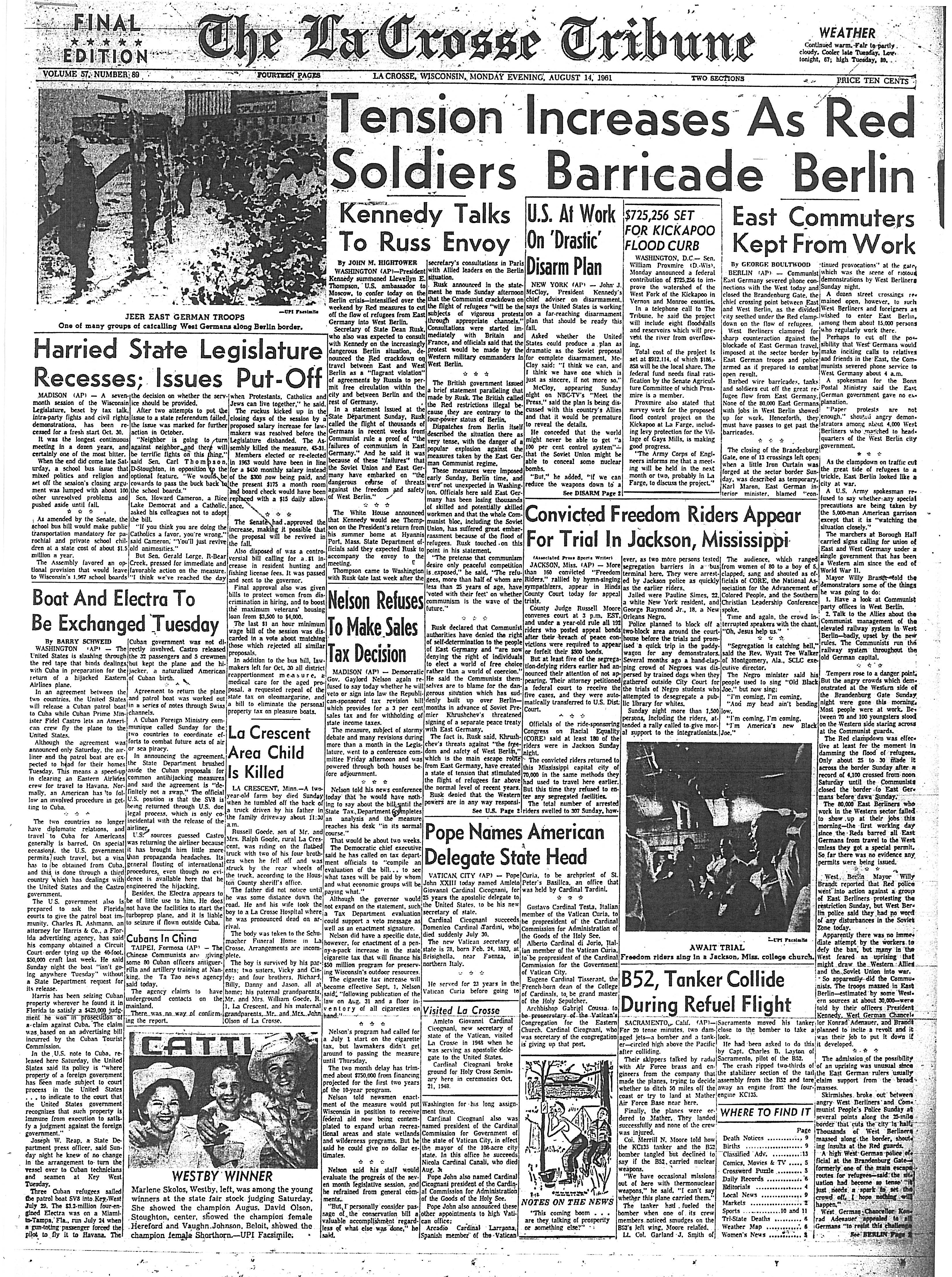 April 15, 1961, page 1 April 15, 1961, page 2 April 16, 1961, page 1 April 16, 1961, page 2 April 17, 1961, page 1 April 17, 1961, page 2 April 18, 1961, page 1 April 18, 1961, page 2 April 19, 1961, page 1 April 19, 1961, page 2 April 20, 1961, page 1 April 20, 1961, page 2Cold War — Berlin Wall