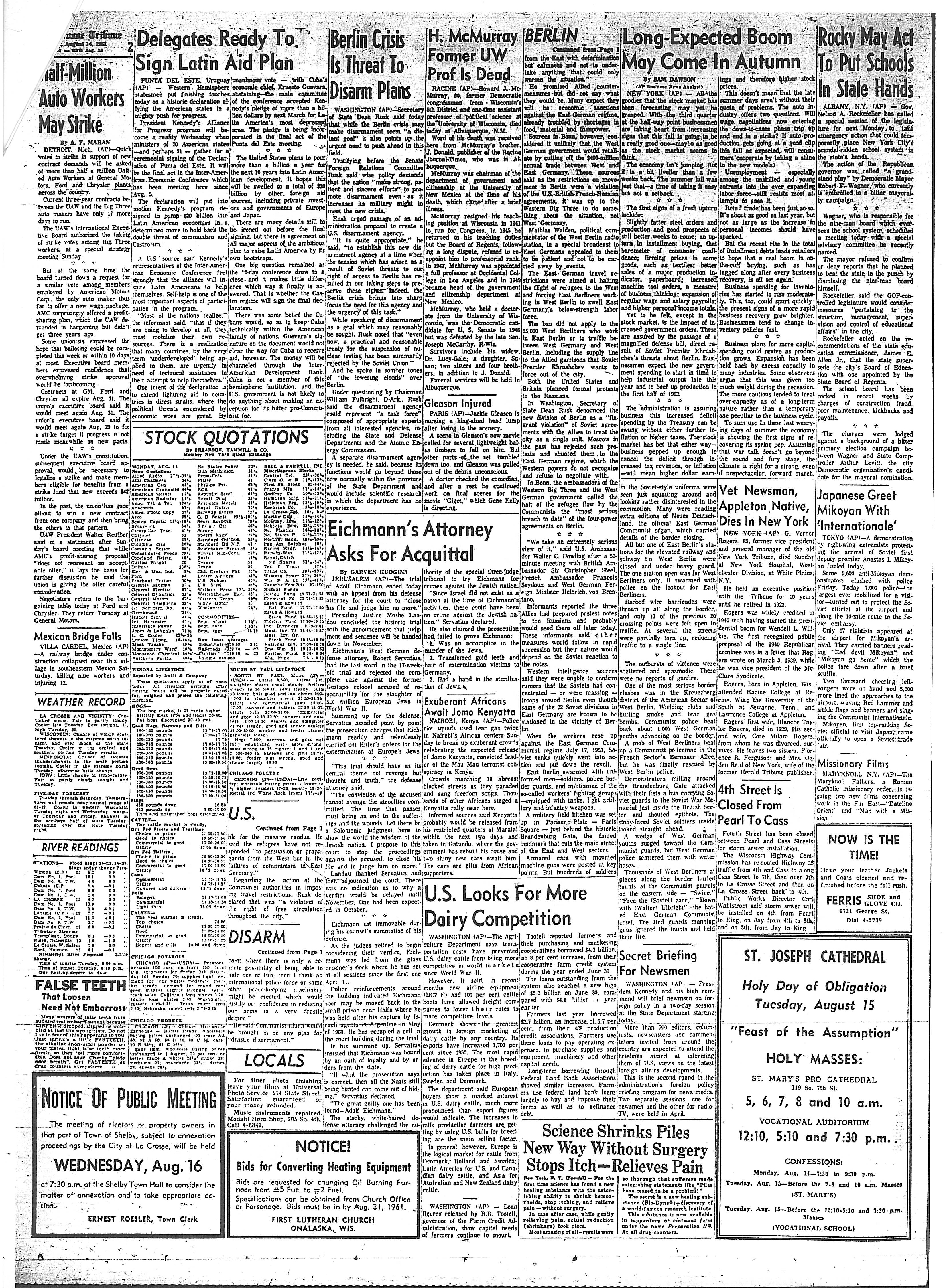 August 6, 1945, page 1August 8, 1945, page 1 August 8, 1945, page 2 August 9, 1945, page 1August 9, 1945, page 2 August 14, 1995, page A1August 14, 1995, page A6August 6, 2005, page A1August 6, 2005, page A10October 8, 2017, page C5World War II — Battle of the Bulge