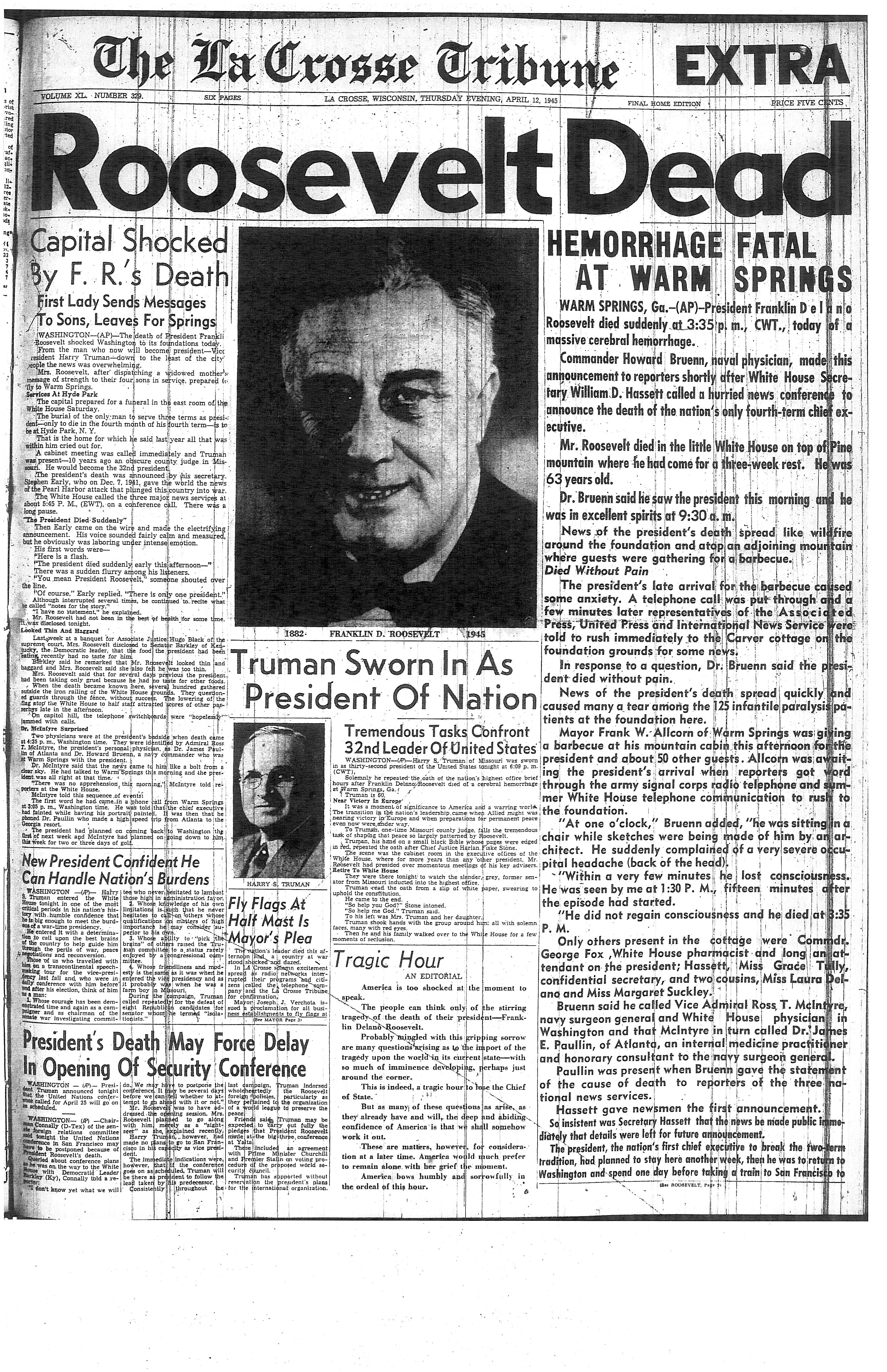 November 9, 1932, page 1 November 9, 1932, page 6 November 4, 1936, page 1 November 6, 1940, page 1 November 8, 1944, page 1 April 12, 1945, page 1 April 12, 1945, page 2 April 12, 1945, page 3Iran Hostage Crisis