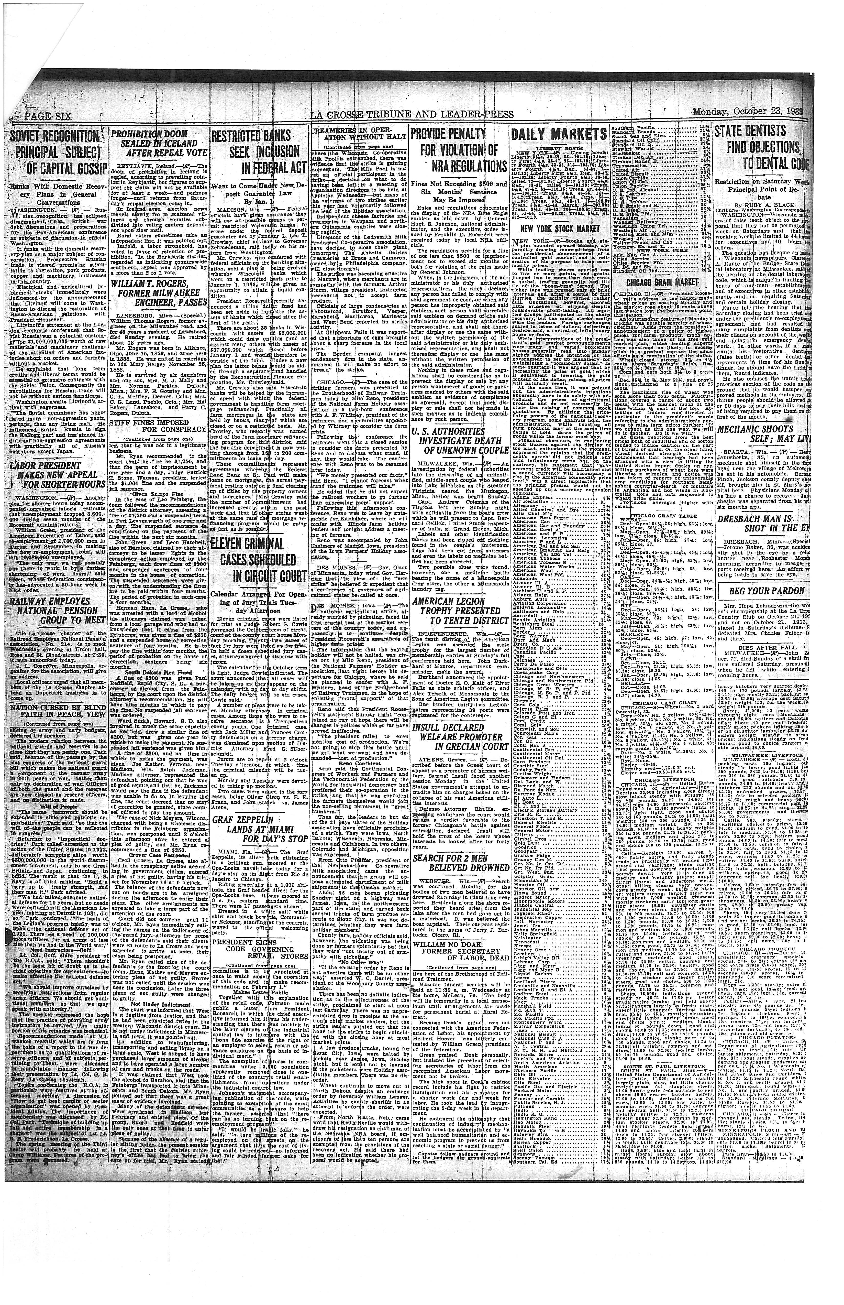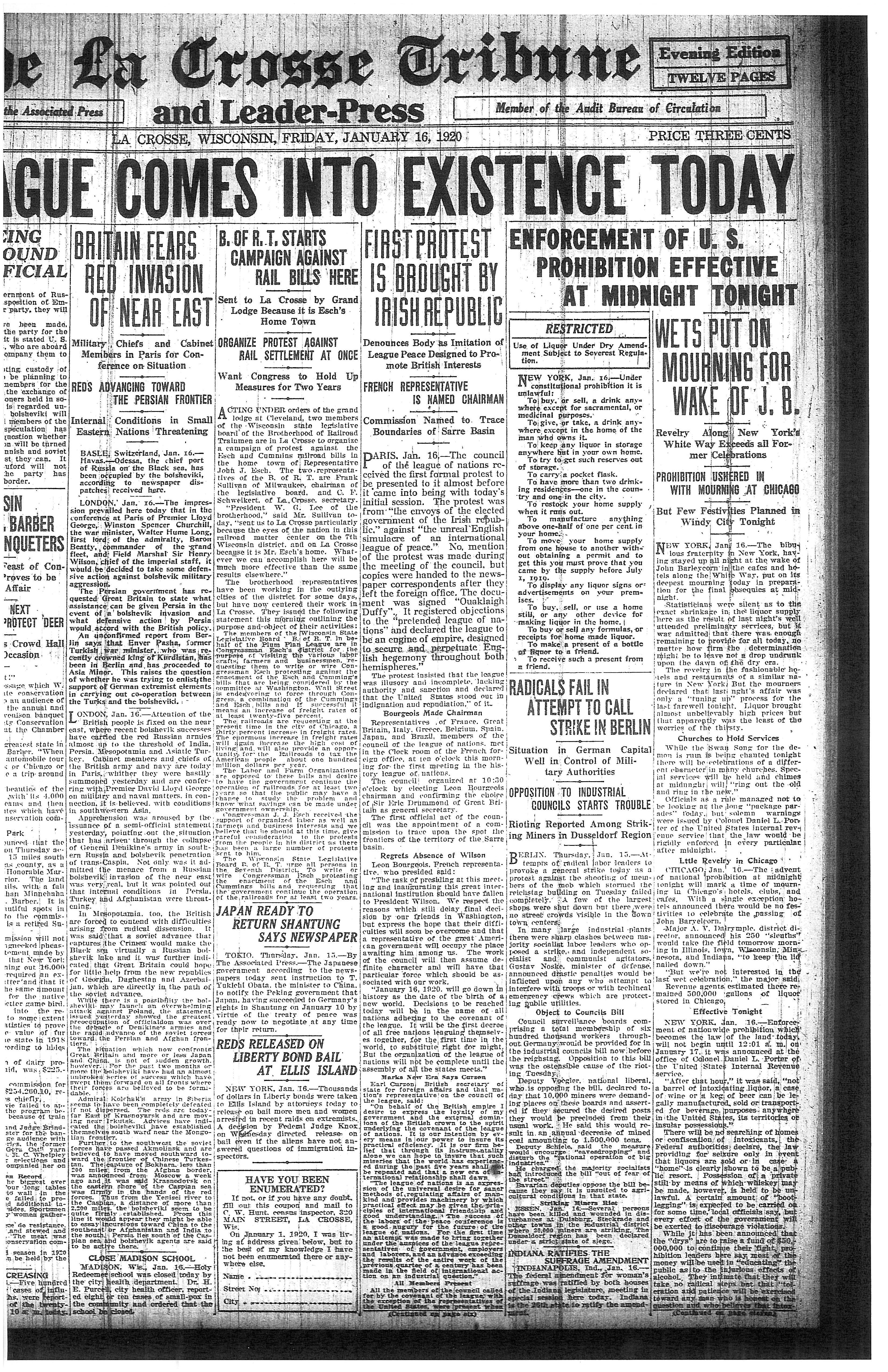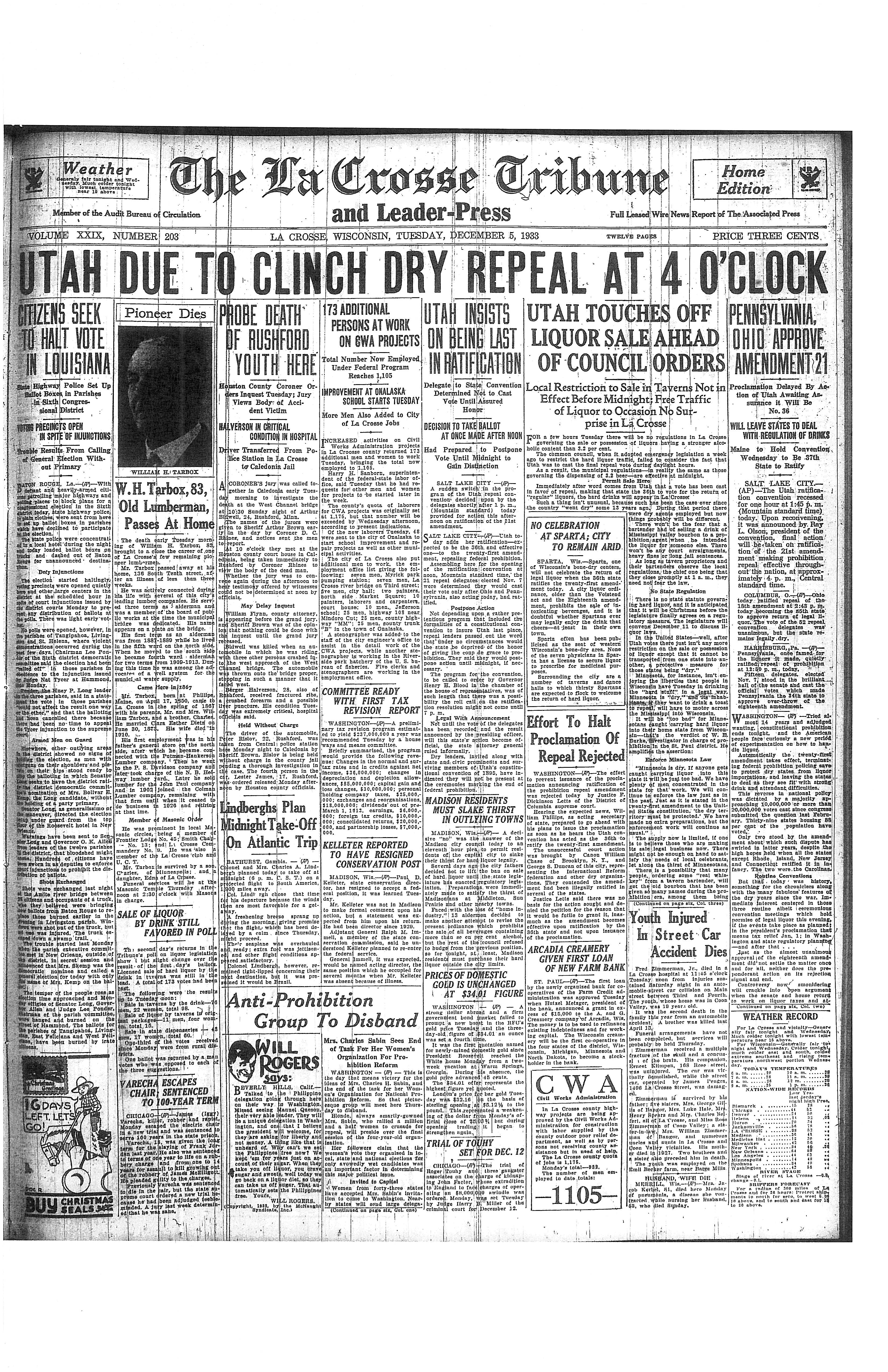 January 16, 1920, page 1 January 16, 1920, page 7 January 17, 1920, page 1 December 8, 1929, page 1 December 5, 1933, page 1 December 5, 1933, page 6 December 6, 1933, page 1 December 6, 1933, page 6Ronald Reagan