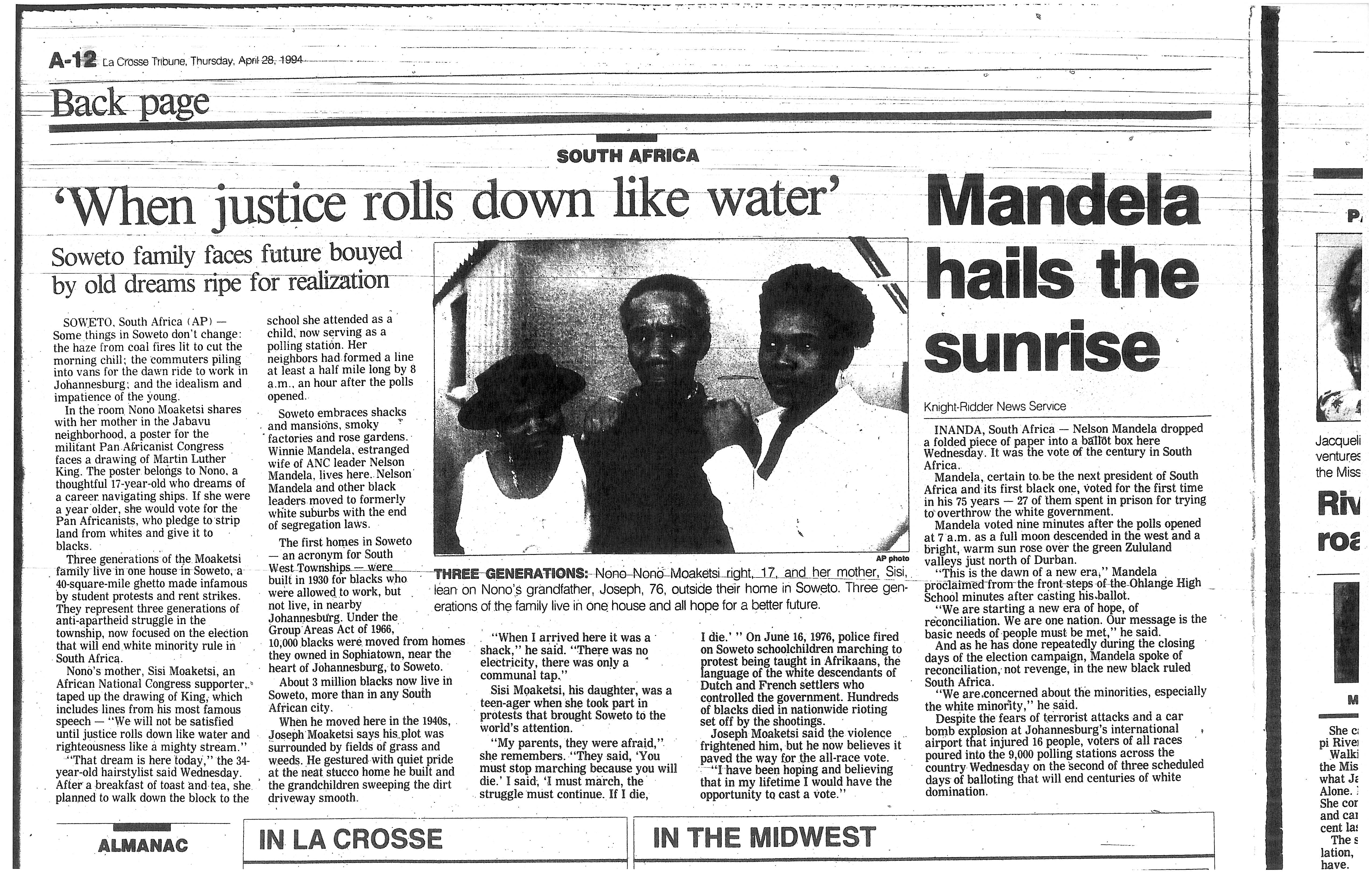 June 17, 1901, page 1 June 17, 1901, page 3 April 25, 1904 July 4, 1976, page R-19Nelson Mandela