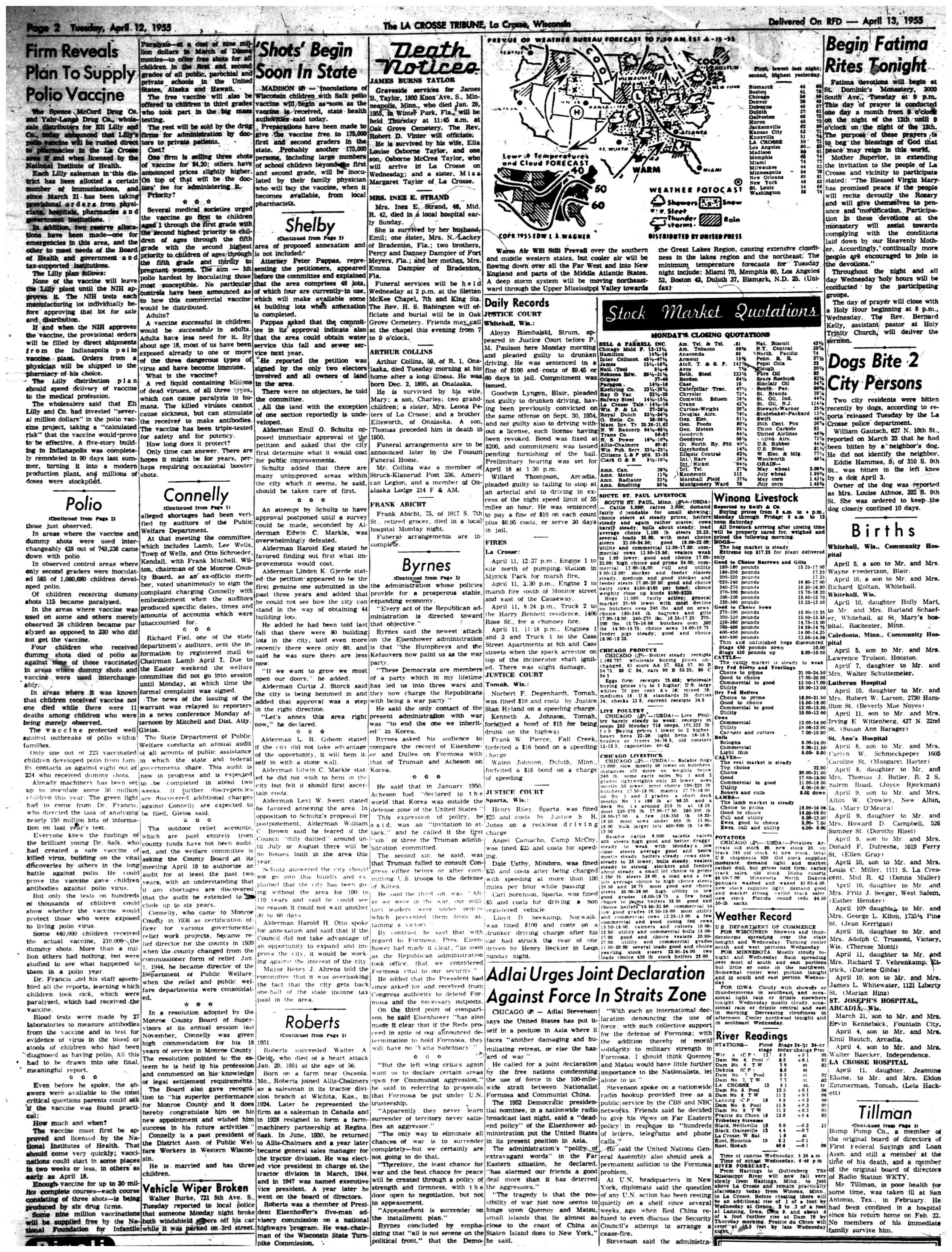 June 12, 1964, page 5 February 11, 1990, page A-1 February 11, 1990, page A-5 April 28, 1994, page A-12 December 6, 2013, page A-1 December 6, 2013, page A-7Polio