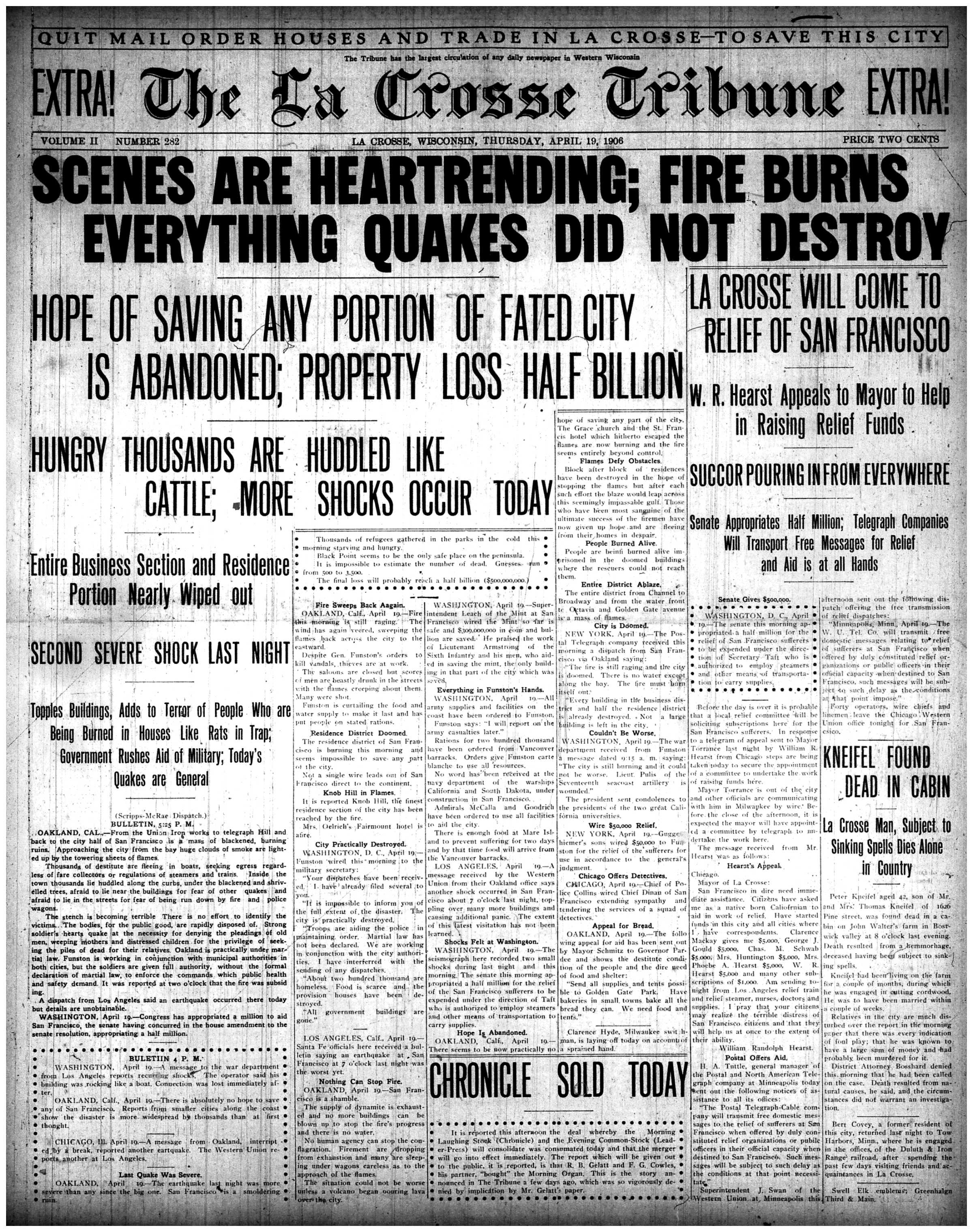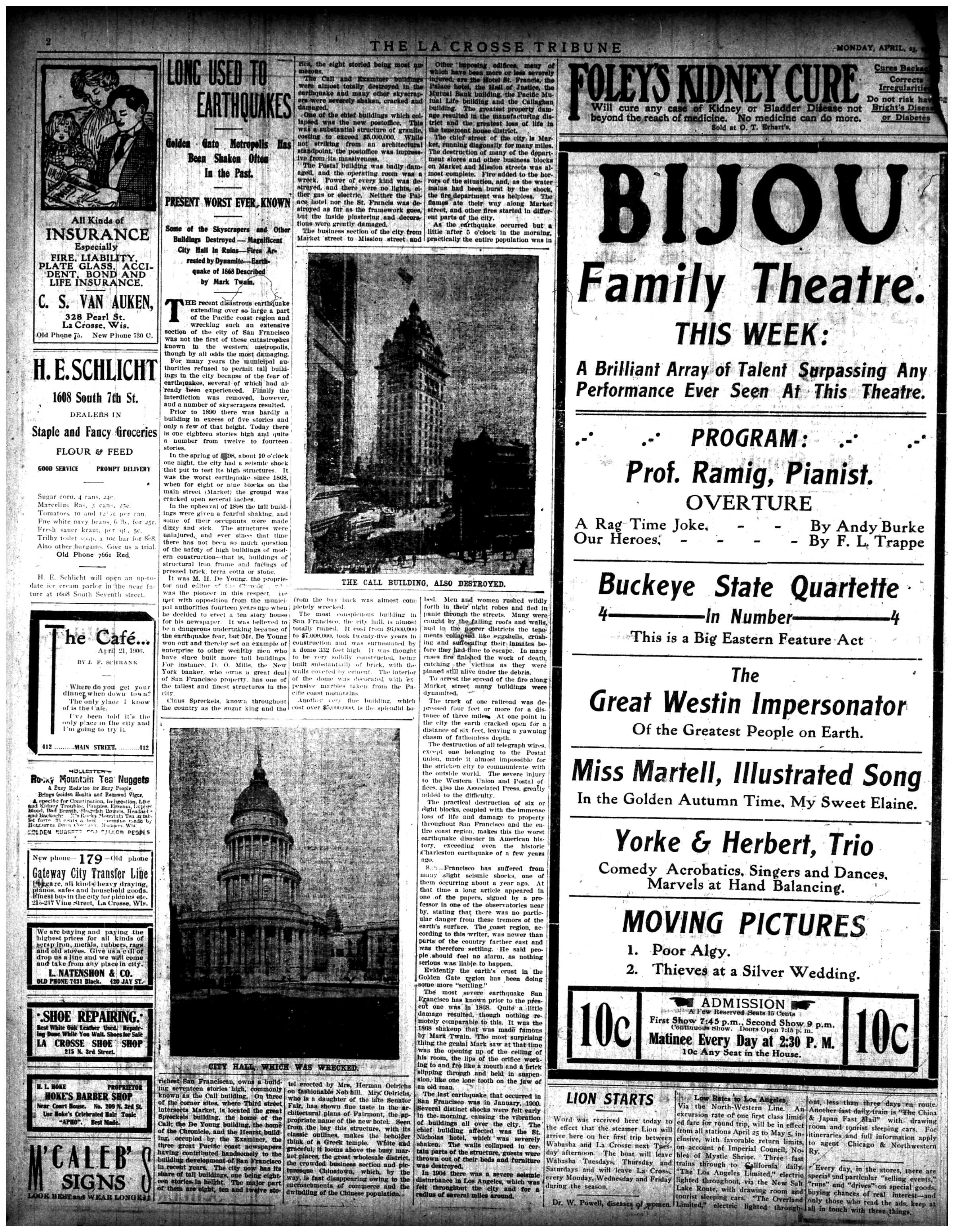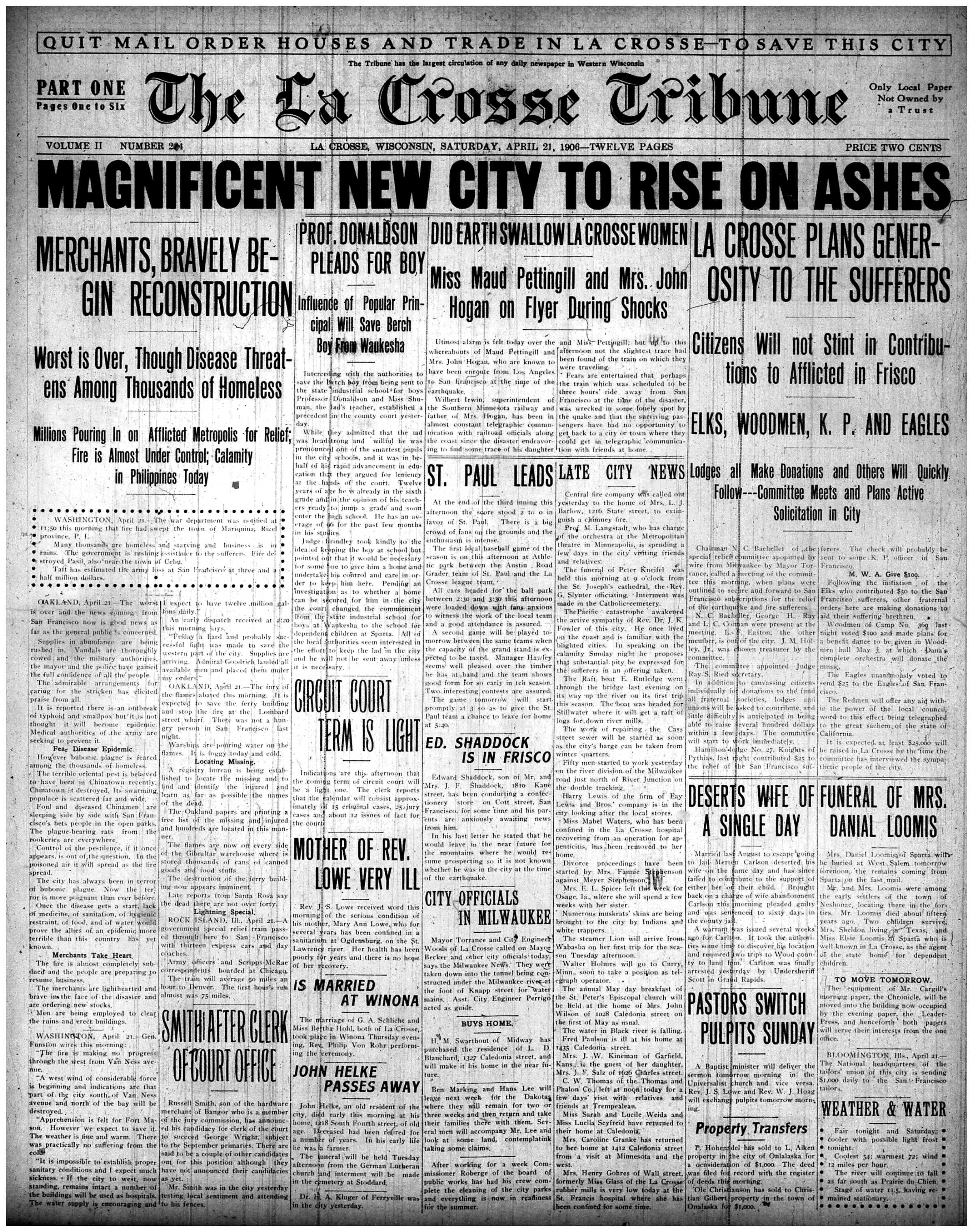 November 5, 1980, page 1 November 5, 1980, page 3 March 30, 1981, page 1 March 31, 1981, page 1 March 31, 1981, page 3 March 31, 1981, page 4 March 31, 1981, page 12 November 7, 1984, page 1 November 7, 1984, page 7 June 6, 2004, page A-1 June 6, 2004, page A-2San Francisco Earthquake, 1906