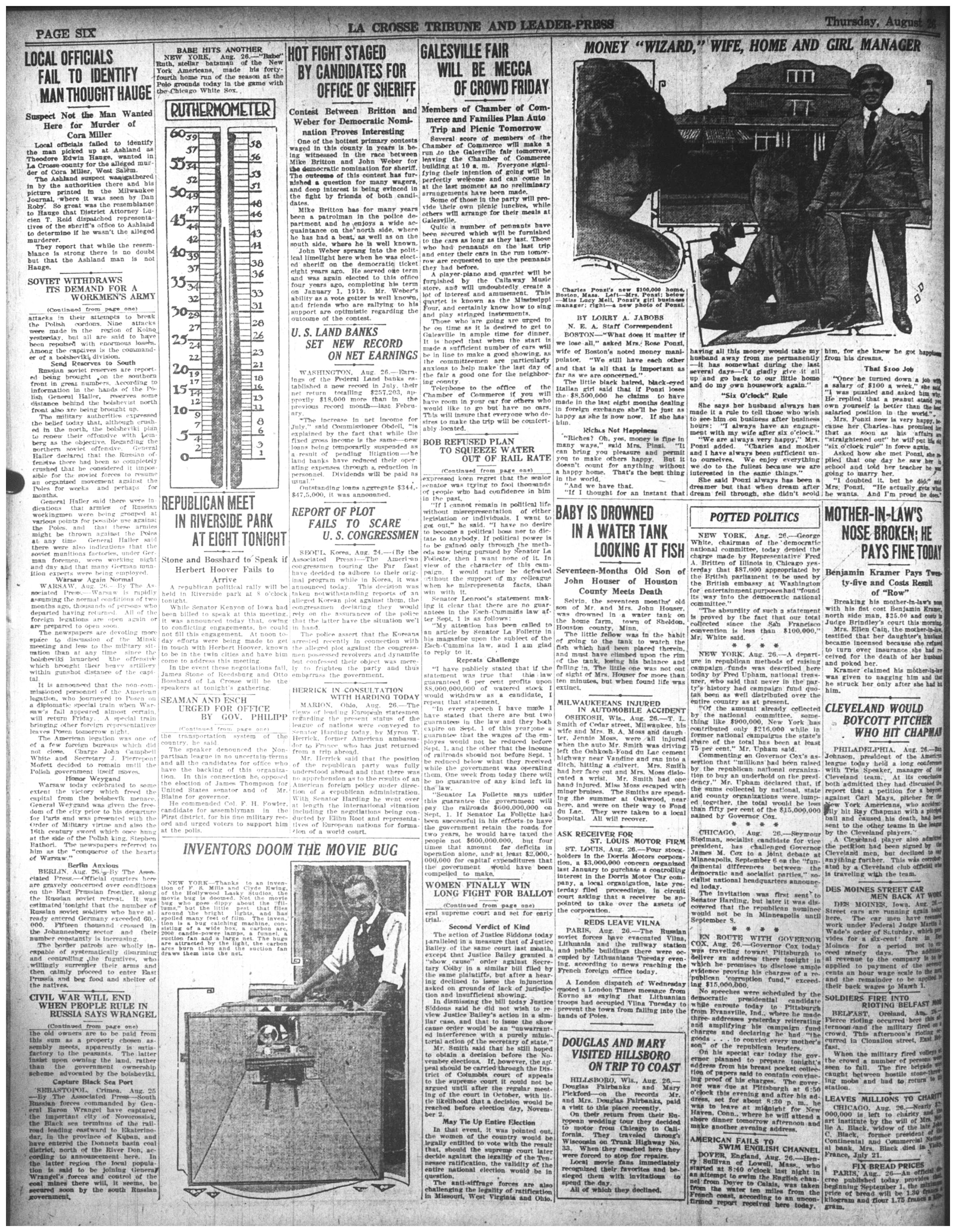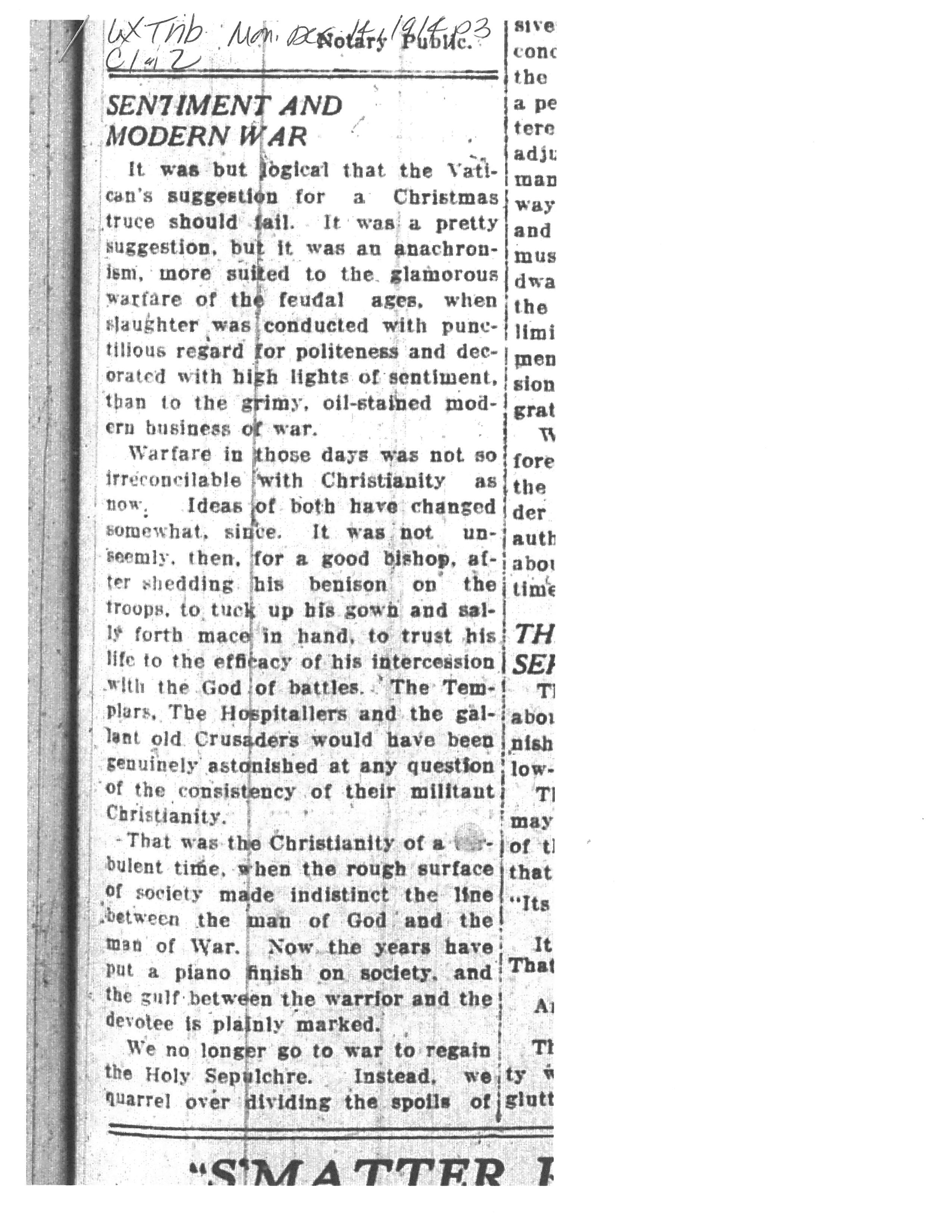 January 15, 1912, page 1, part 1 January 15, 1912, page 1, part 2 January 15, 1912, page 1, part 3 March 3, 1913, page 1, part 1 March 3, 1913, page 6, part 2 July 20, 1917, page 15 August 18, 1920, page 1, part 1 August 18, 1920, page 6, part 2 August 20, 1920, page 1 August 26, 1920, page 1, part 1 August 26, 1920, page 6, part 2World War I — Christmas Truce