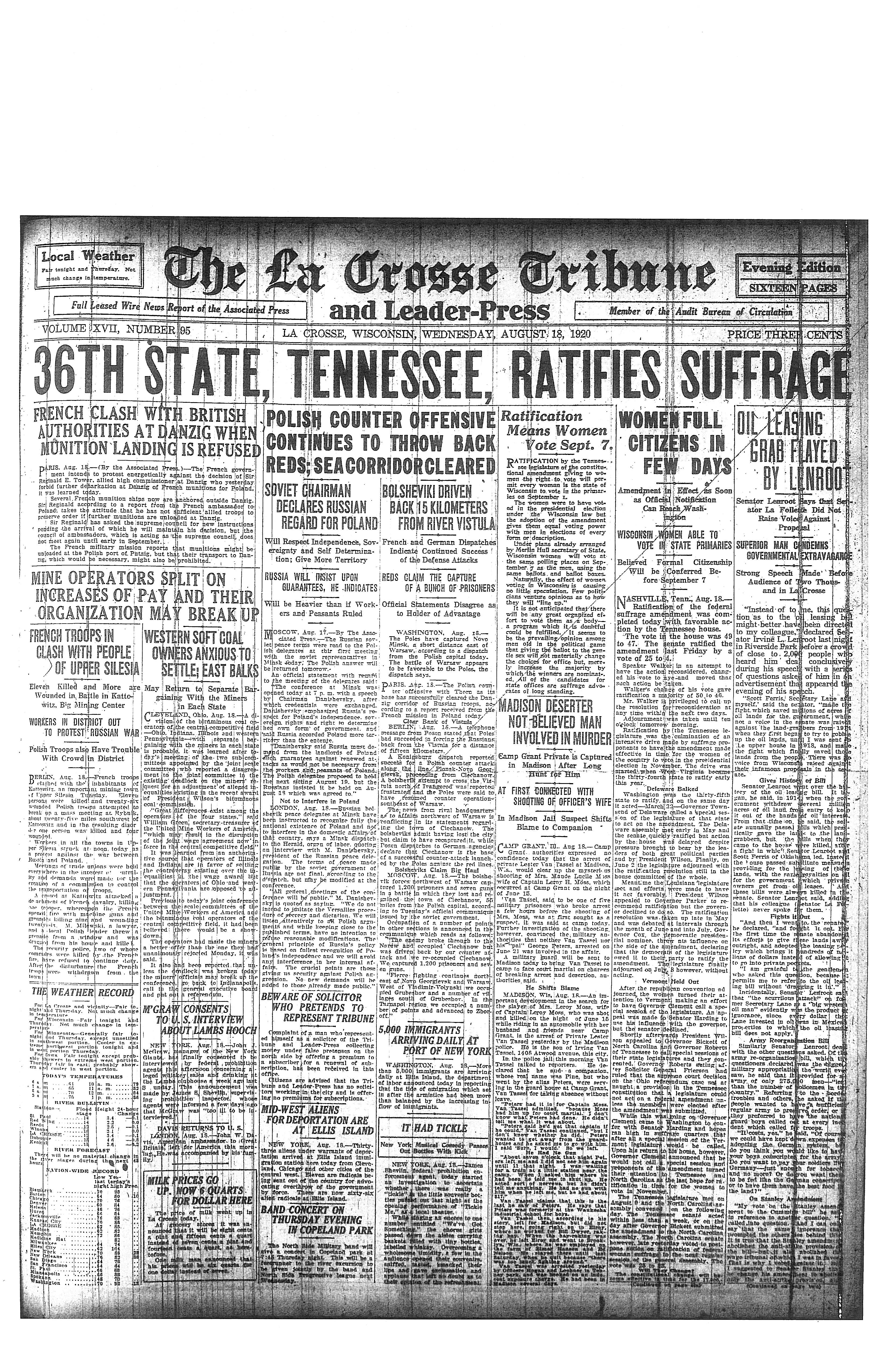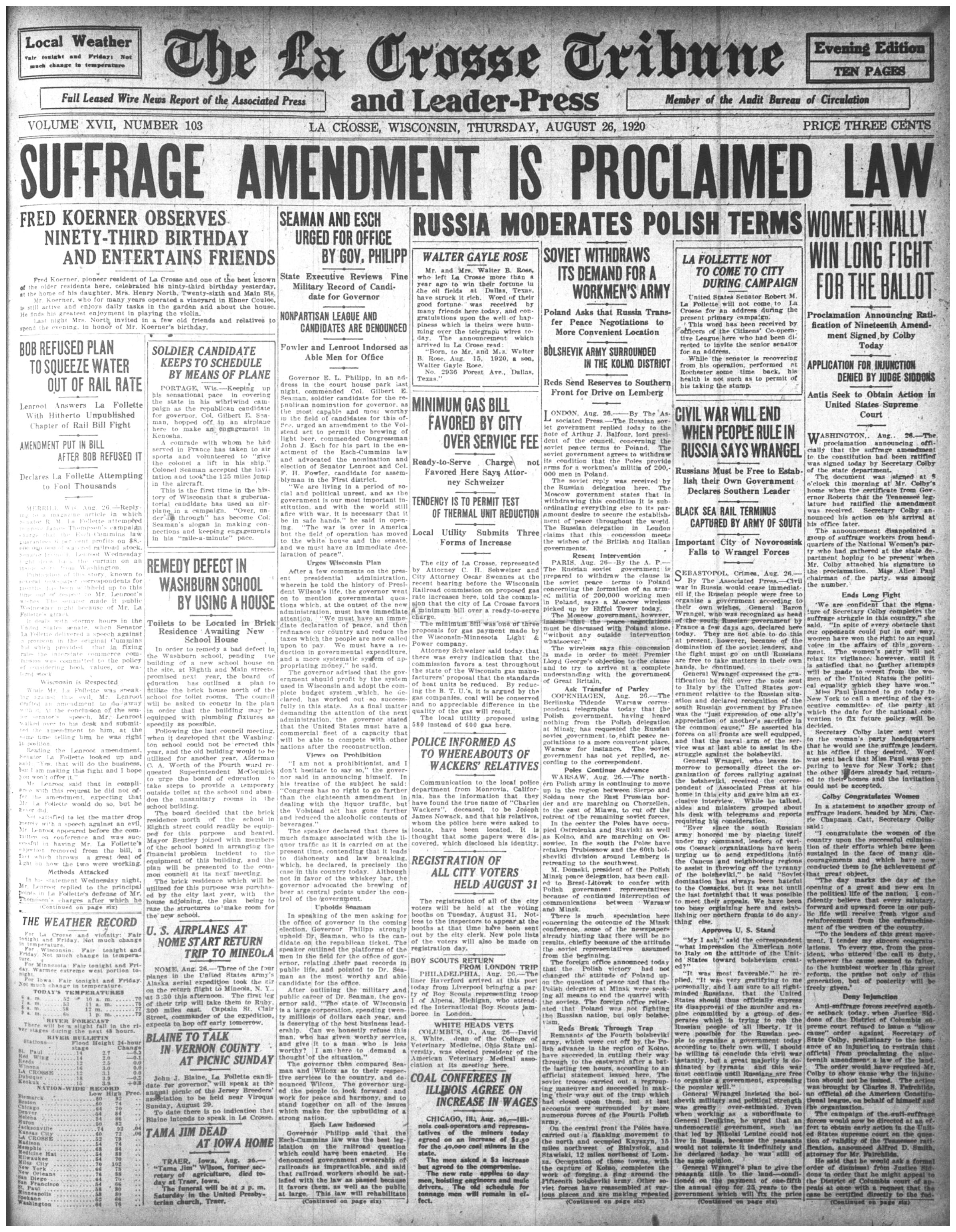 May 10, 1940, page 1 May 10, 1940, page 12 January 25, 1965, page 1 January 25, 1965, page 2Women's Suffrage/19th Amendment