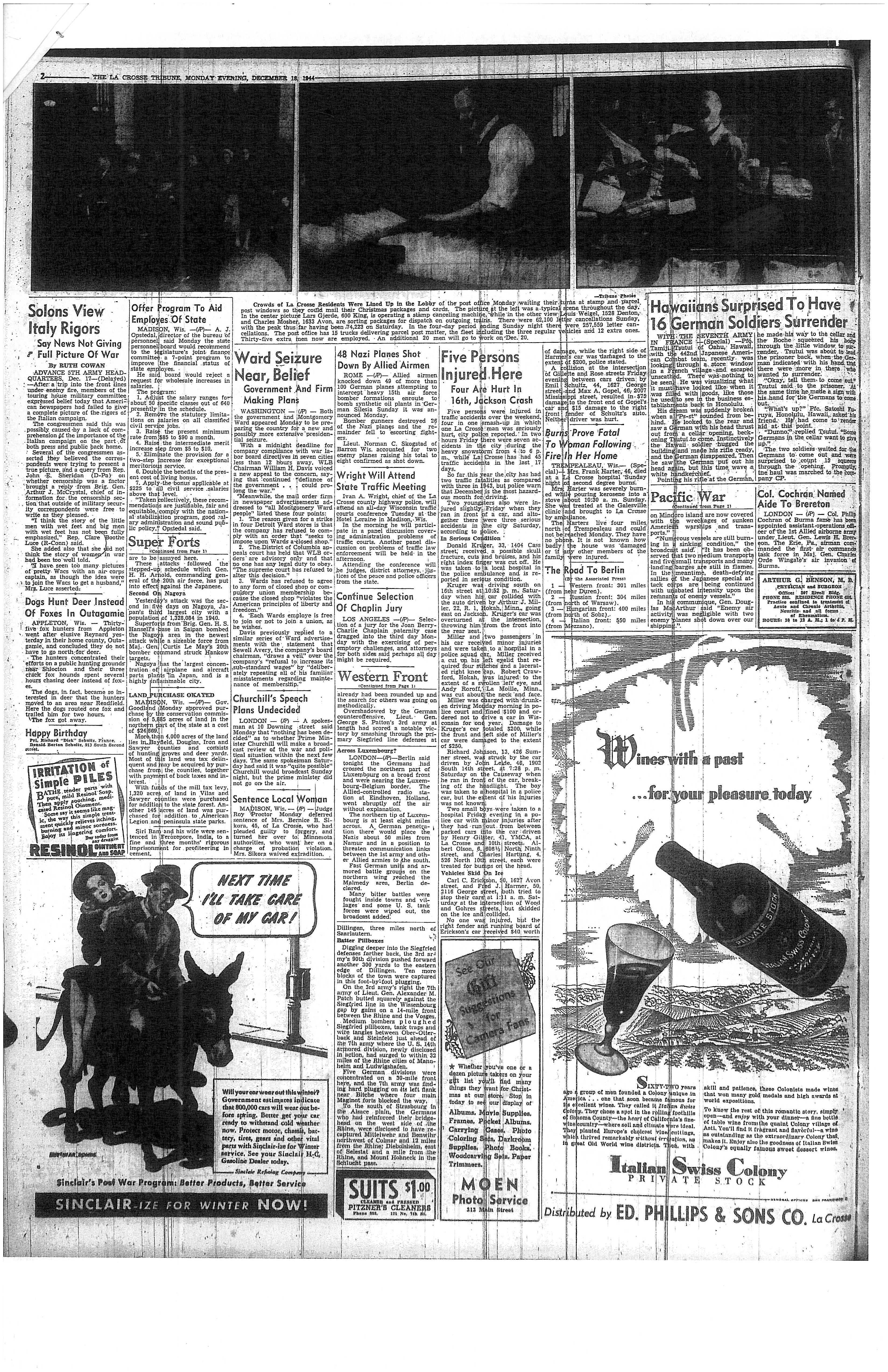 December 18, 1944, page 1, part 1 December 18, 1944, page 2, part 2 December 26, 1944, page 1, part 1 December 26, 1944, page 2, part 2 December 30, 1944, page 1, part 1 December 30, 1944, page 6, part 2 January 1, 1945, page 1, part 1 January 1, 1945, page 2, part 2World War II — Hitler