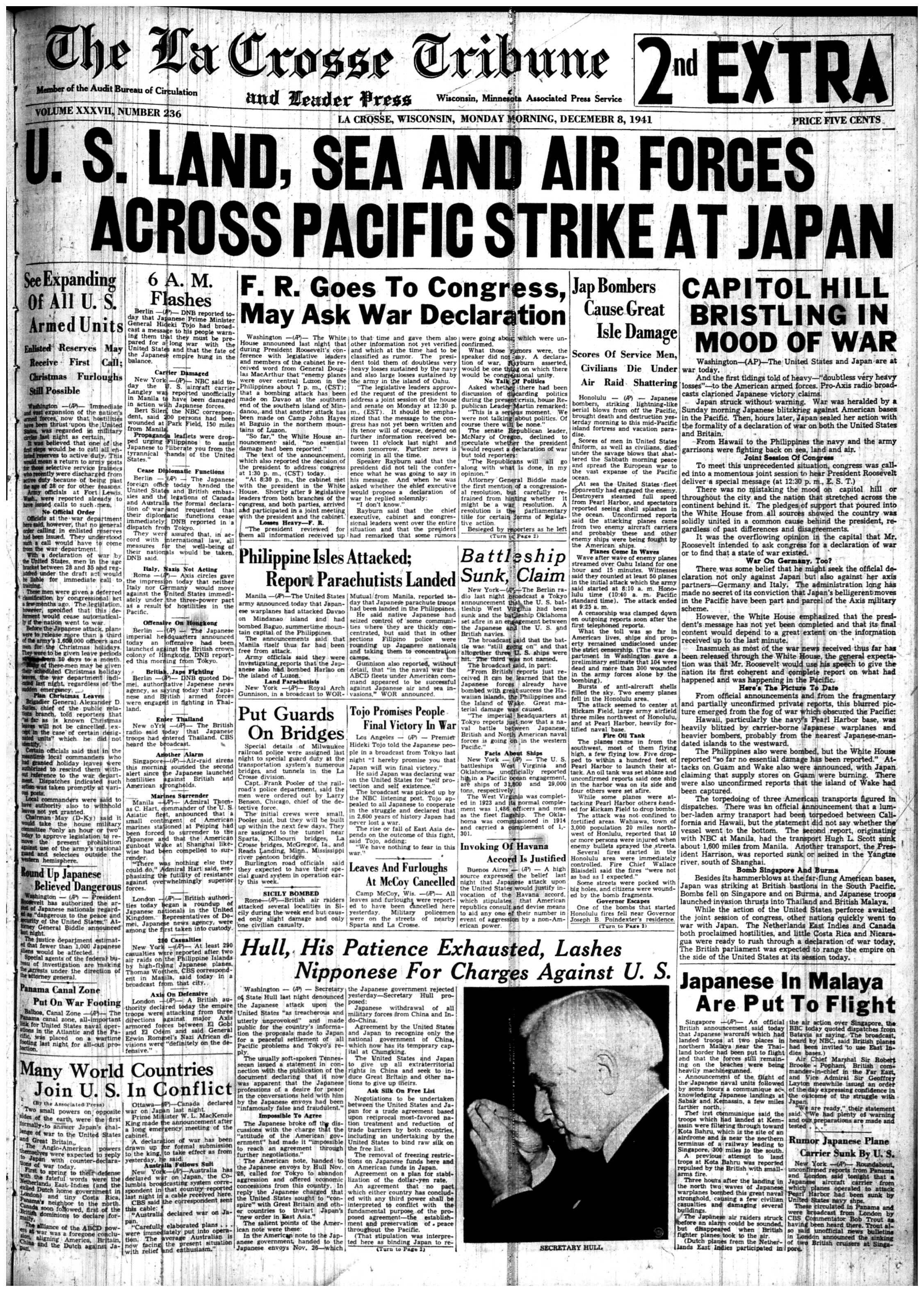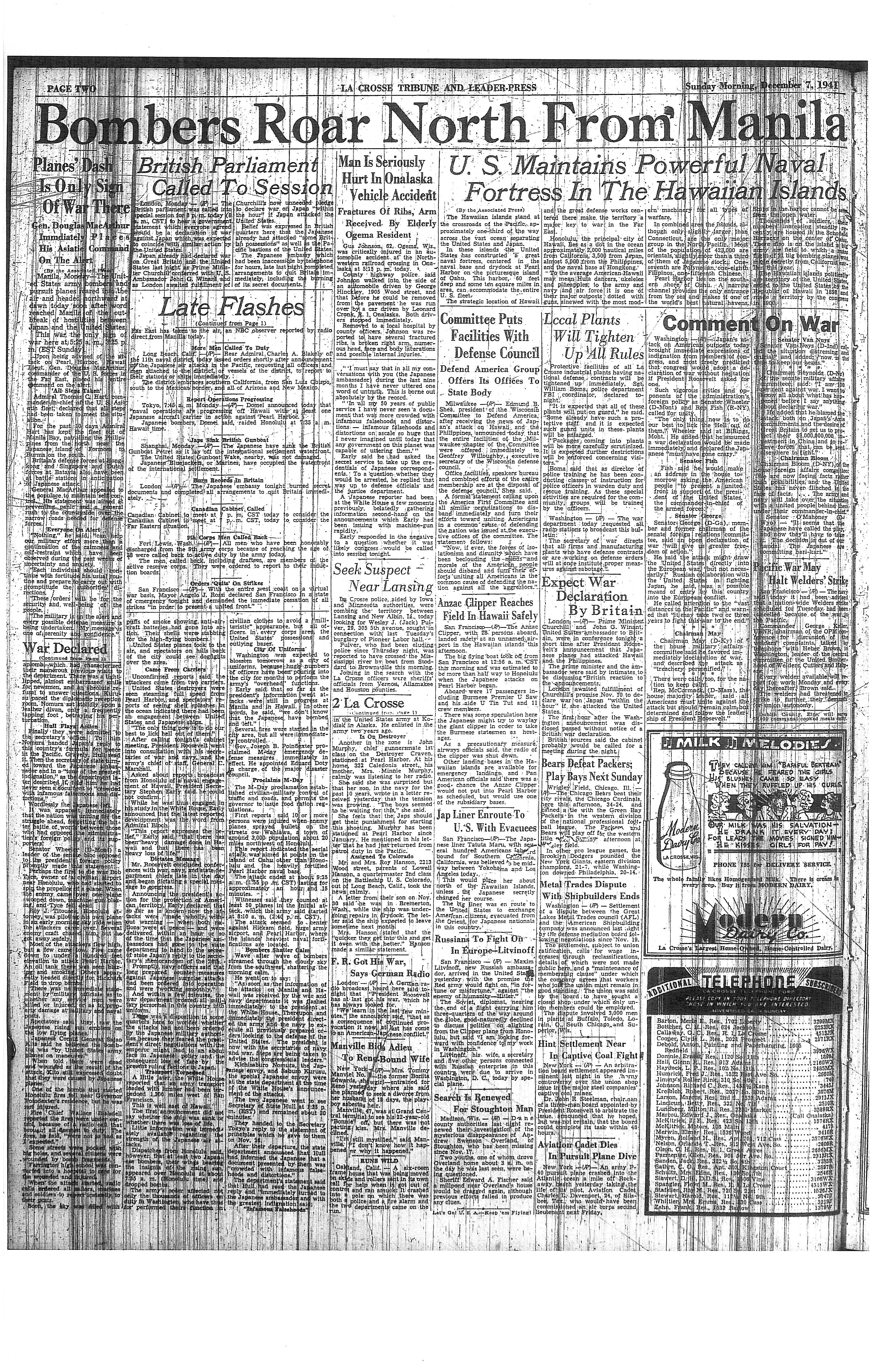 December 7, 1941, page 1, part 1 December 7, 1941, page 2, part 2 December 8, 1941, page 1Topic