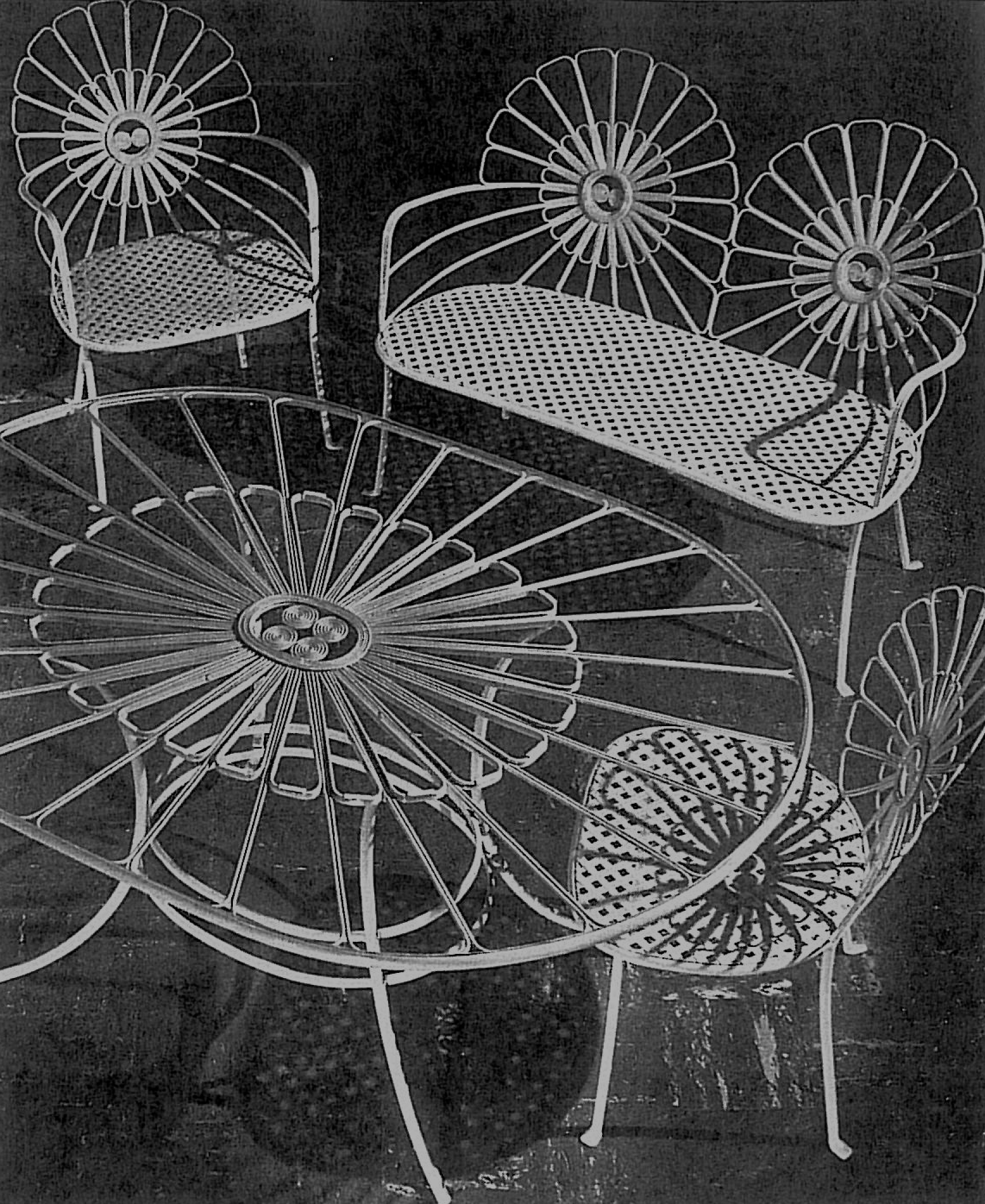 A known example of the Leinfleder wrought iron furniture line. As far as the family knows, the pieces were unsigned and not marked in anyway.