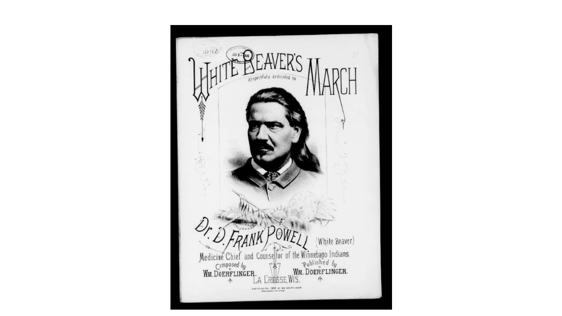 Composed by William Doerflinger and "Respectfully Dedicated to Dr. D. Frank Powell (White Beaver), Medicine Chief and Counsellor of the Winnebago Indians"