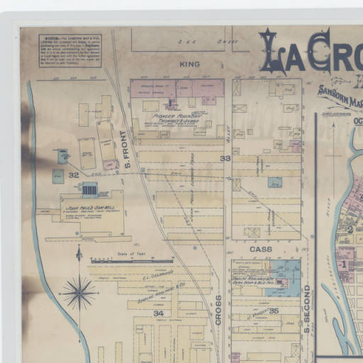 Sanborn Fire Insurance maps are meticulously detailed, large-scale lithographed, color-keyed street maps. Sanborn Maps helped insurance agents in the late 19th and early 20th centuries determine the degree of fire hazard associated with a particular property. Sanborn Fire Insurance maps typically focus on the business districts within communities. Features include street names, street and sidewalk widths, property boundaries, locations of fire hydrants, locations of water and gas mains, and the names of most public buildings, churches and companies. The maps also document the strength of the local fire department and the presence of fire hazards such as blacksmith forges, large baker's ovens or stored kerosene, and the existence of firefighting equipment, cisterns or community water works. Rivers, canals, railroad corridors and similar features are also noted. Each map provides a detailed assessment of the buildings within a district. Assessments include an outline of each building and outbuilding, the size and number of stories of every building, the location of windows and doors, fire walls, and indications of sprinkler systems. They note the nature of the business or businesses which occupied individual buildings, sometimes even particular room uses. They list the type of construction and the composition of building materials including the framing, flooring, and roofing materials.