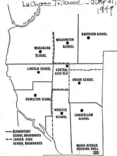 Newspaper articles related to public school boundaries in La Crosse, Wisconsin, from 1949-2003. Changes in school boundaries have often sparked controversy among parents of school-aged children. Follow the changes since 1949, read about the beginning of the neighborhood school concept in 1971, the 1979 controversy of redrawing the line for high school attendance in the district, the progressive socio-economic balancing goals in 1991-1992, and the need again in 2002 to provide socio-economic balance and diversity among the elementary population.