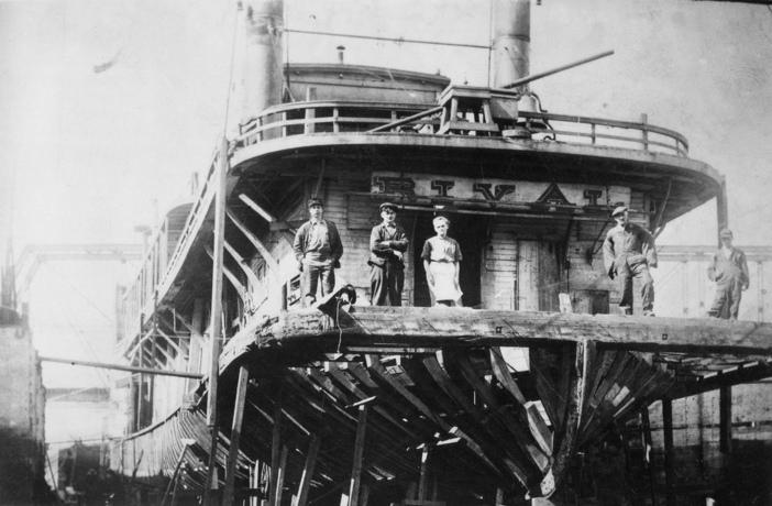 The UW-La Crosse Historic Steamboat Photograph collection consists of over 40,000 photographic images of steamboats on the inland waterways of the United States, primarily the Mississippi, Ohio and Missouri rivers and their tributaries. The photos depict steamboats in every phase of their life span from construction to destruction and every aspect of their daily operations from the 1850s to the present. The photos show steamboats in all sort of settings on the water; going through a lock, at a city's waterfront or levee, tied up at shore as they went about their everyday business of hauling freight and passengers and towing barges and rafts. For some steamboats, especially the bigger excursion boats, there may be over a hundred photographs to view; for other boats, there might be only a single photo to document its existence. Besides steamboats, other types of images in the collection include steamboat captains, engineers, pilots, passengers and crews; city and town waterfronts; levees; locks and dams; and river-related activities such as fishing, swimming and clamming.