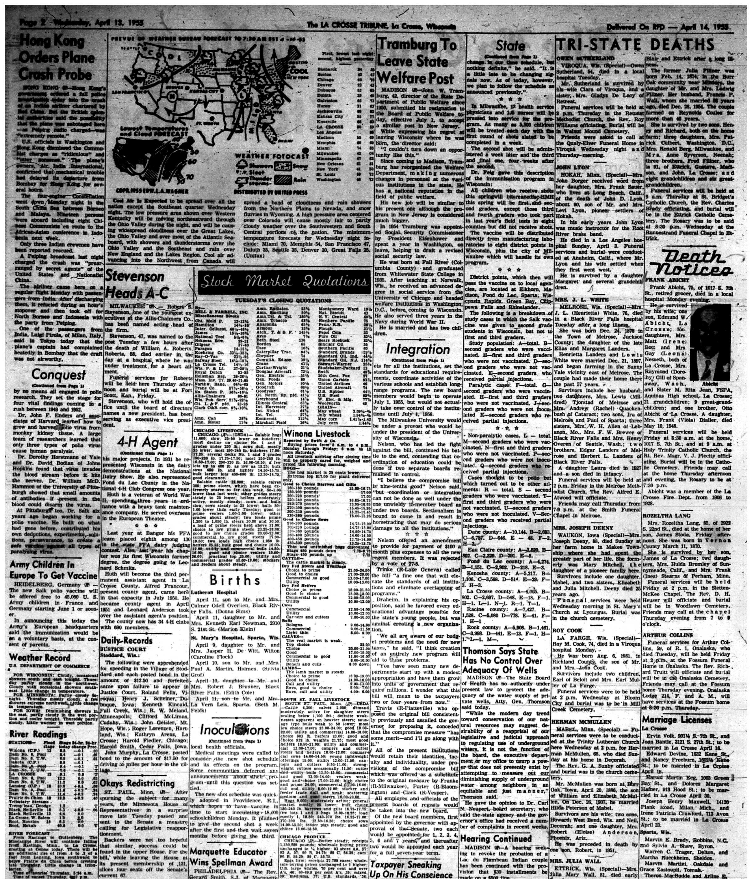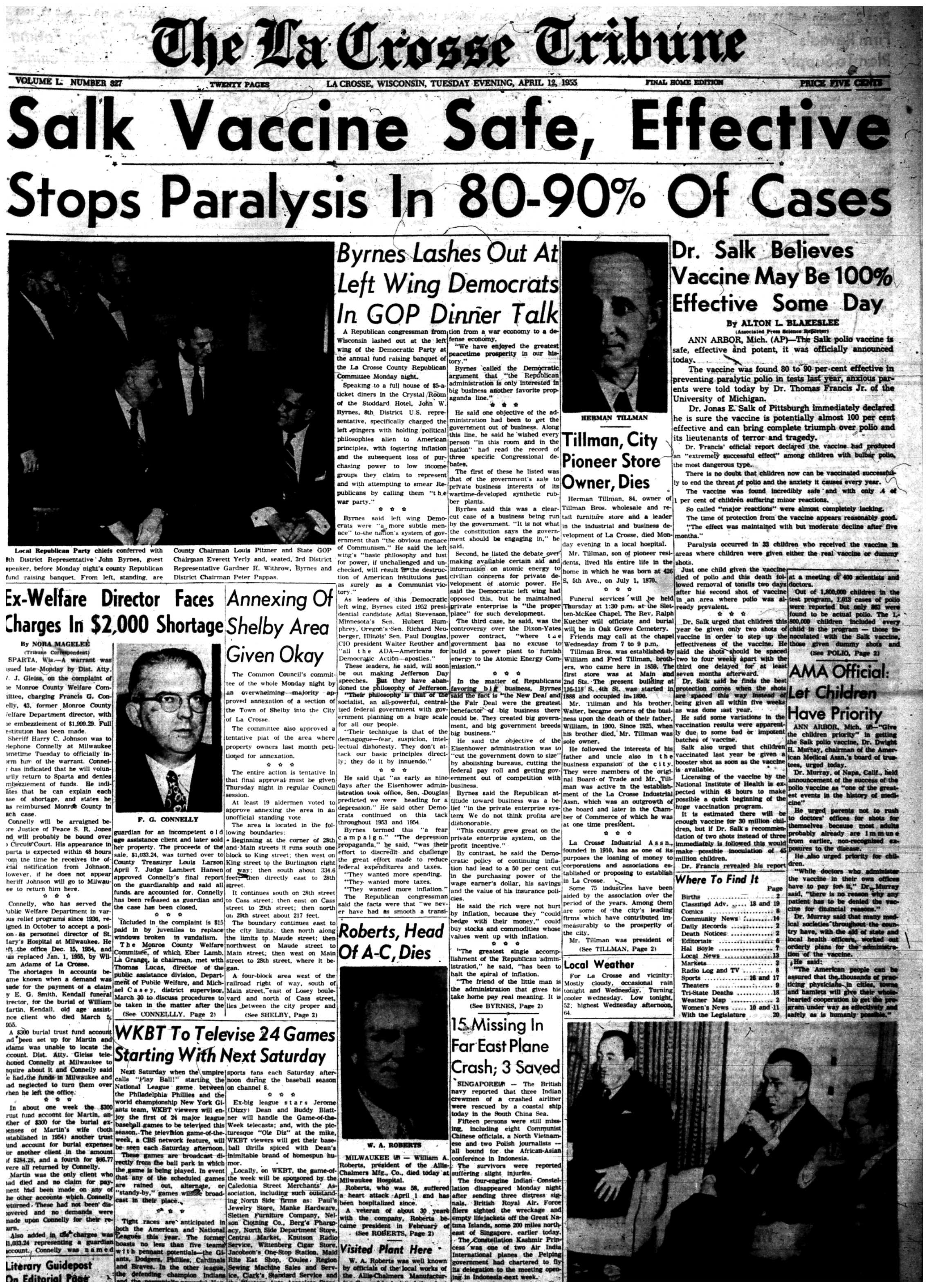 June 12, 1964, page 5 February 11, 1990, page A-1 February 11, 1990, page A-5 April 28, 1994, page A-12 December 6, 2013, page A-1 December 6, 2013, page A-7Polio
